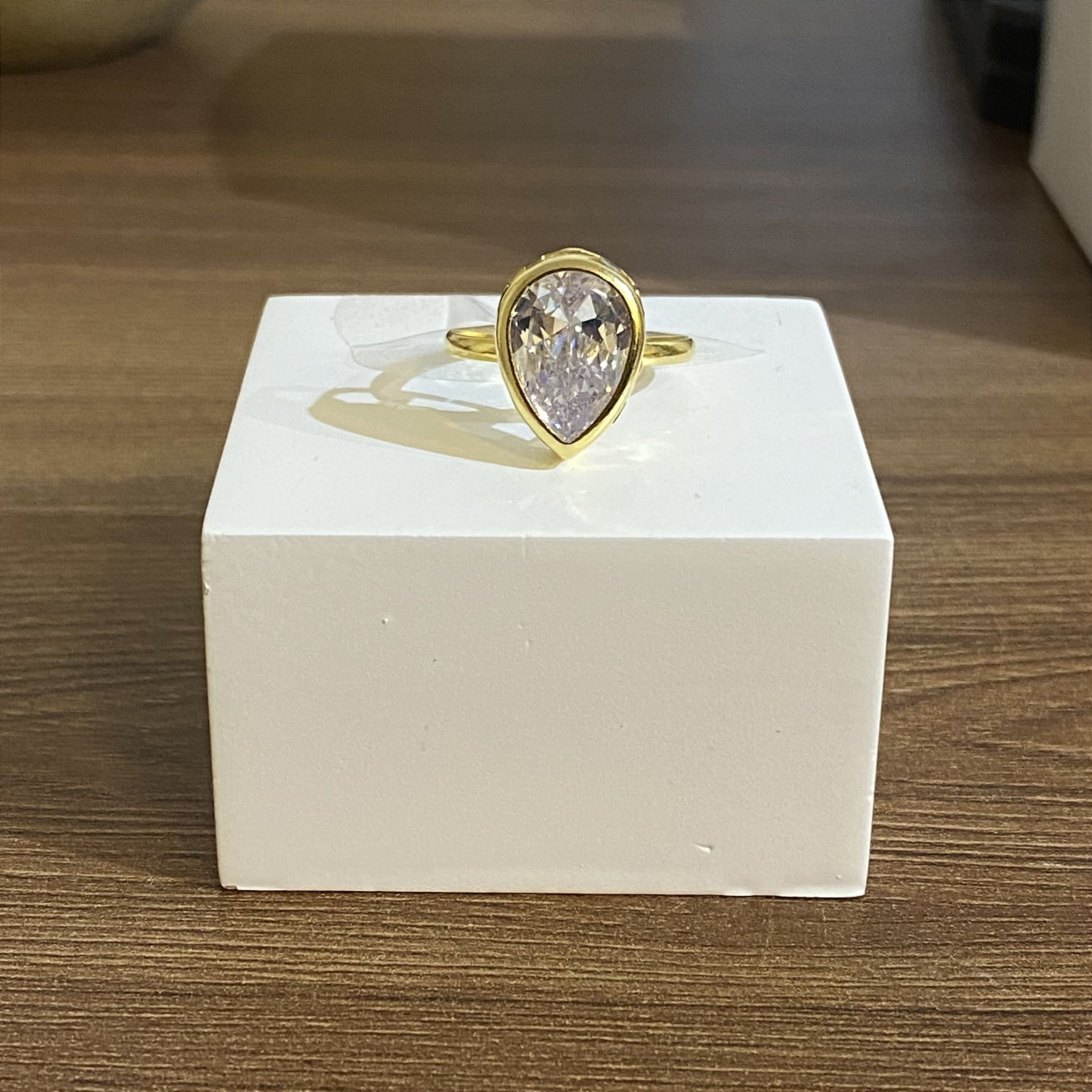 Anel com cristal cravação inglesa, dourado - Semijoia