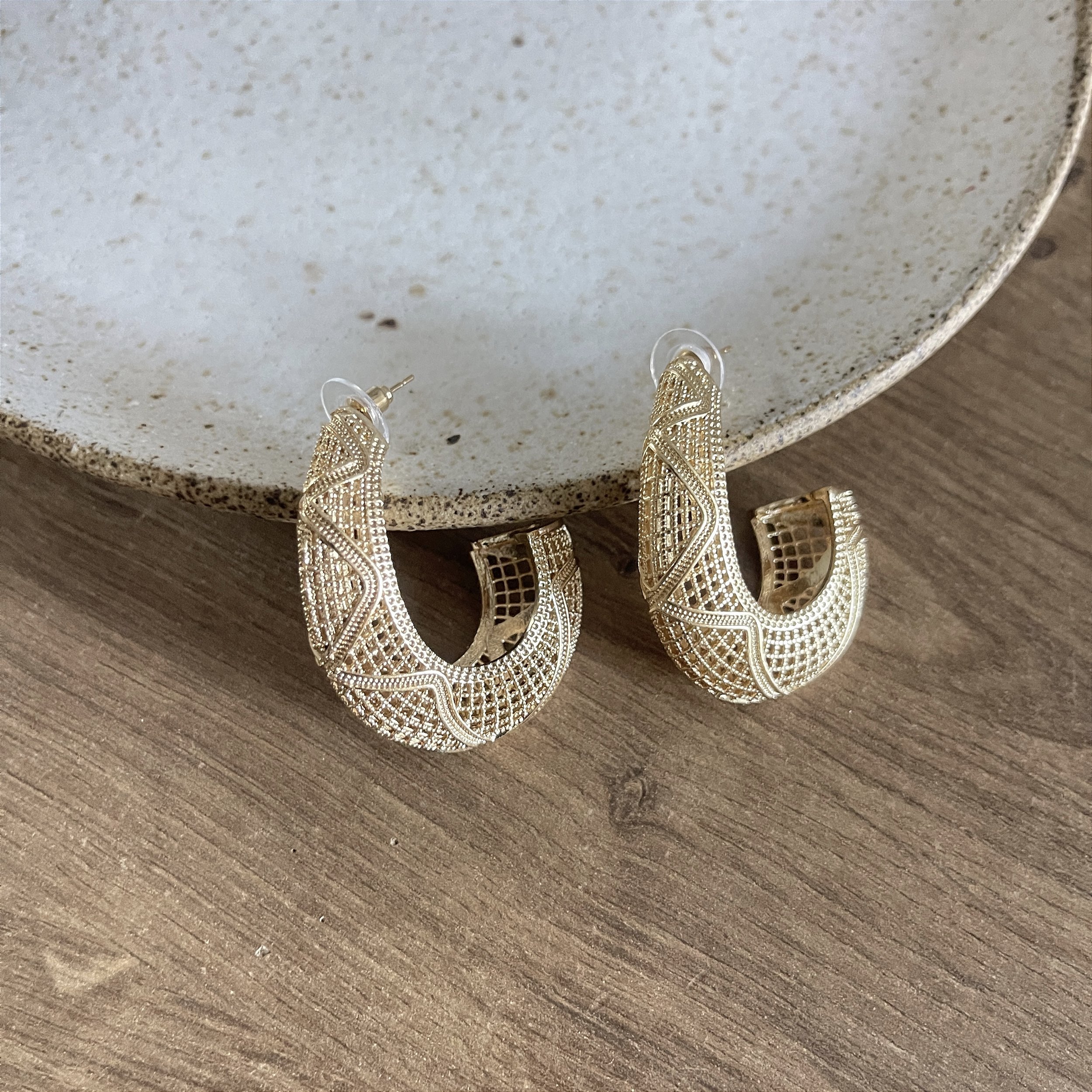 brinco argola ''rendada'' forma orgânica, dourado - biju