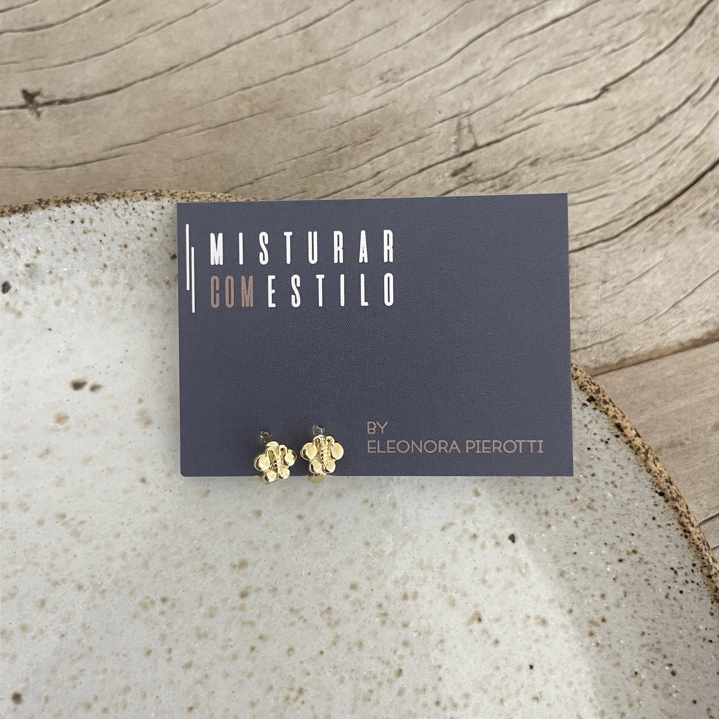 argola betina com uma abelha, dourado - semijoia