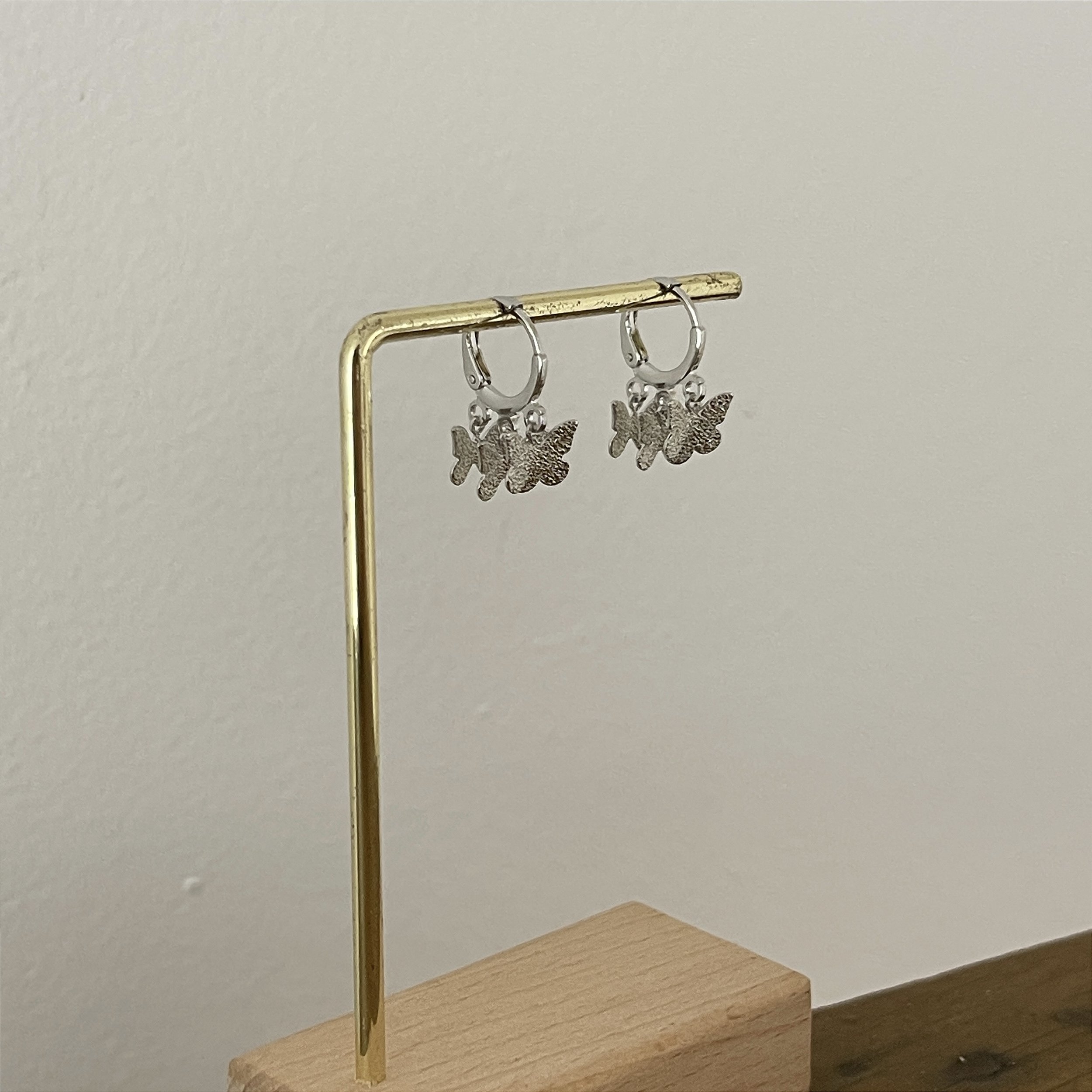 brinco de argolinha com três borboletas foscas, ródio - semijoia