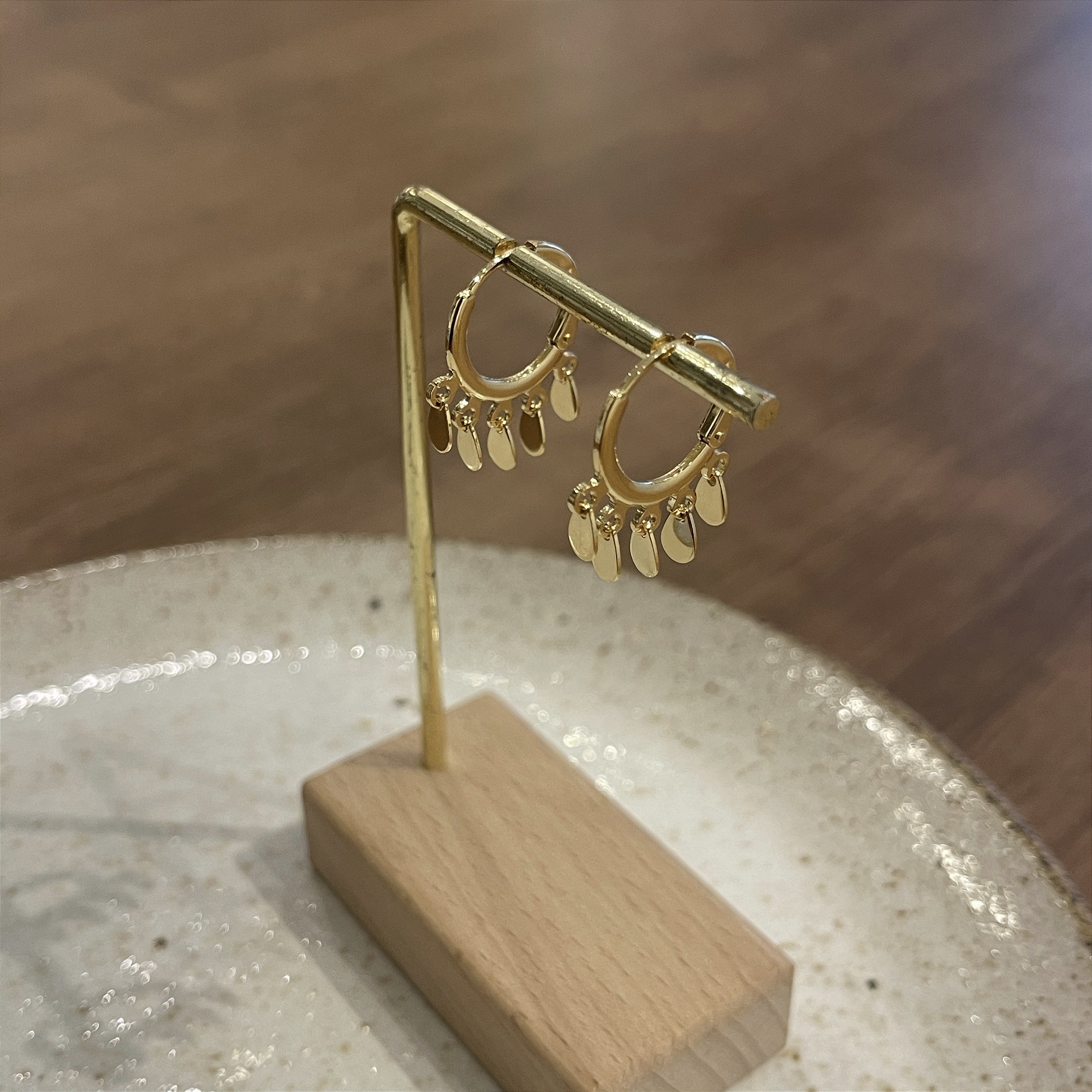 Mini Argola com cinco pingentes de chapa em formato gota, efeito rajado - semijoia