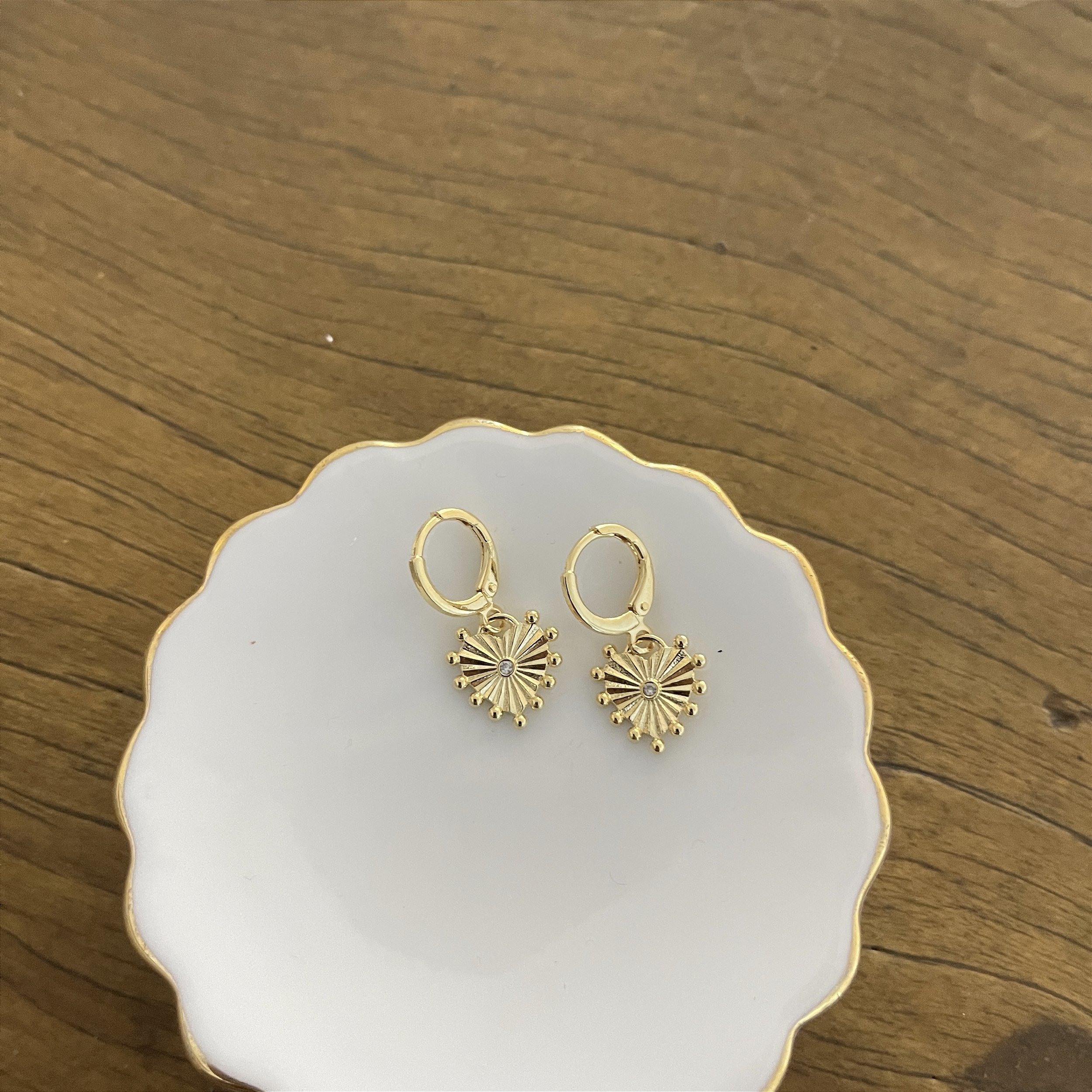 argola coração com esferas em volta e uma zircônia no meio , dourado - semijoia