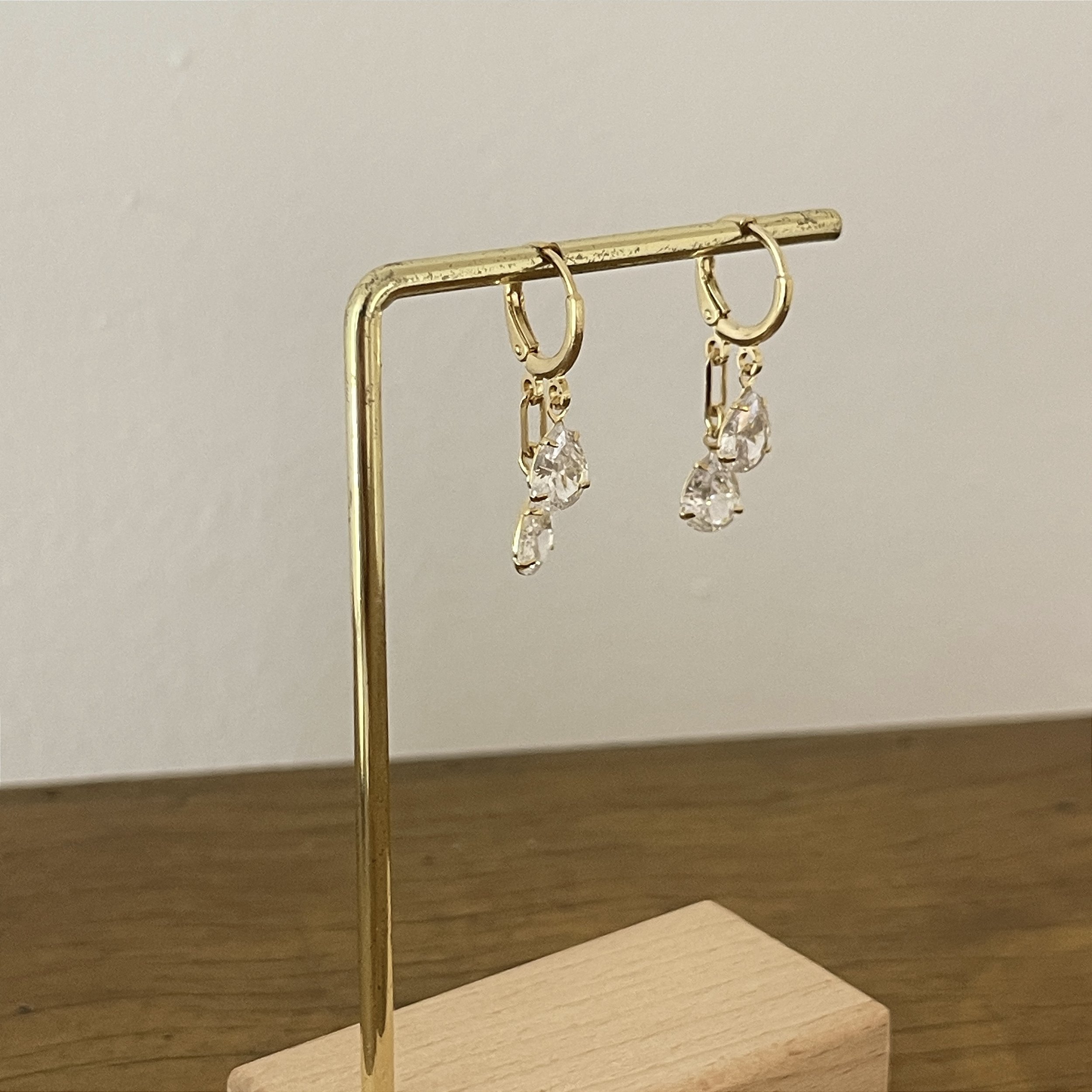 brinco de argolinha com duas gotas cristal, Dourado - semijoia