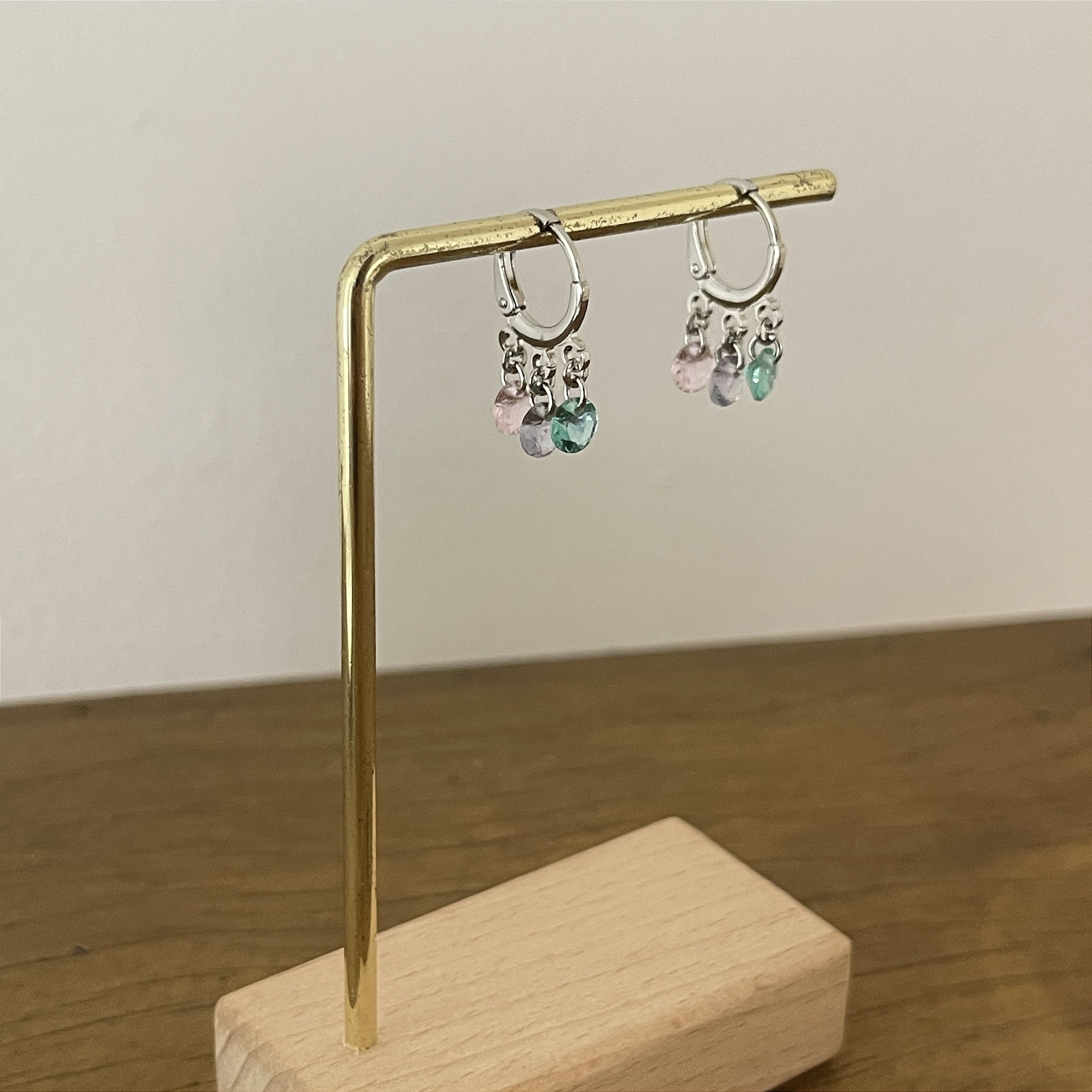 Mini Argola com pingentes de cristais redondos nas cores, verde, safira e kunzita - ródio - semijoia