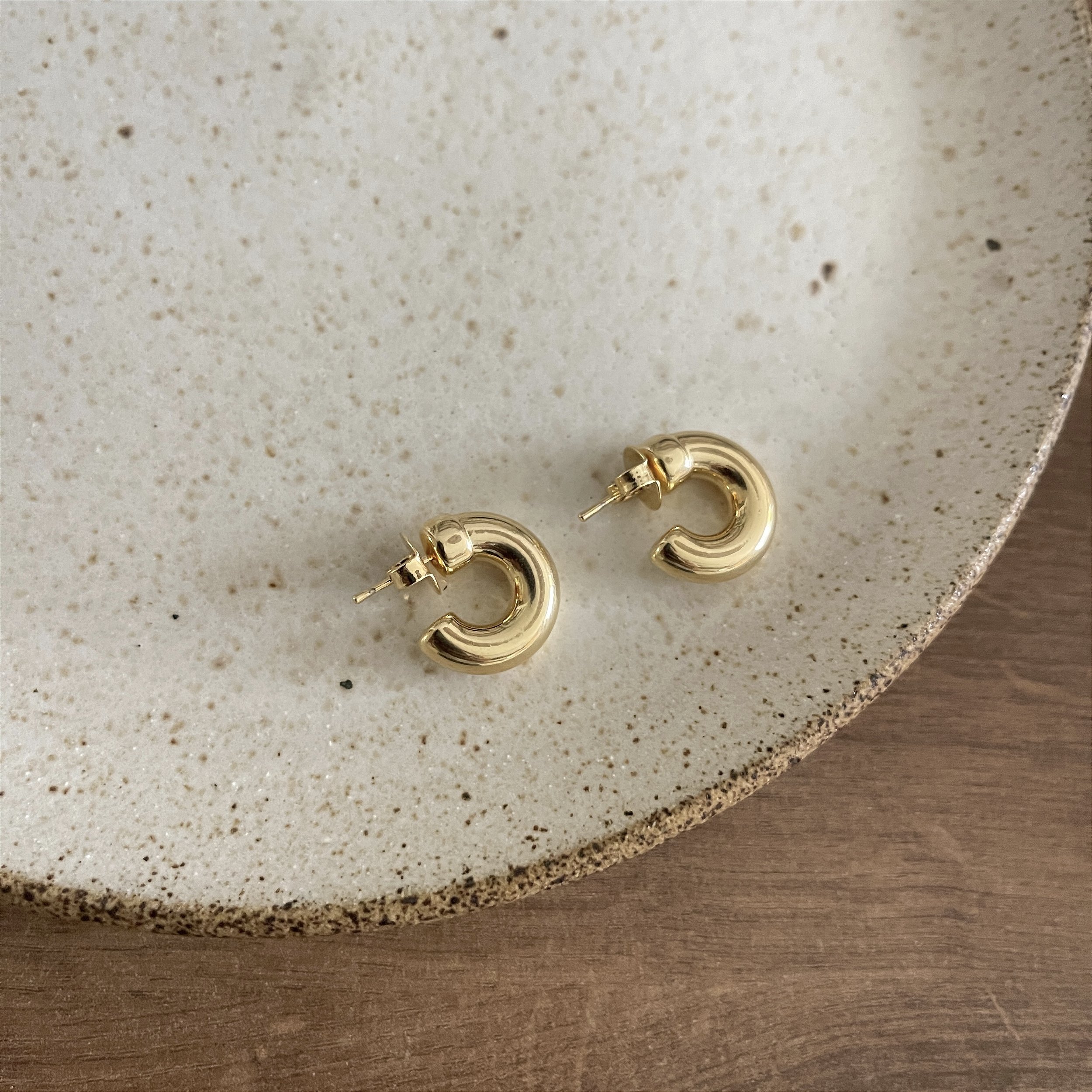Brinco Argola Lisa, acabamento dourado, semijoia