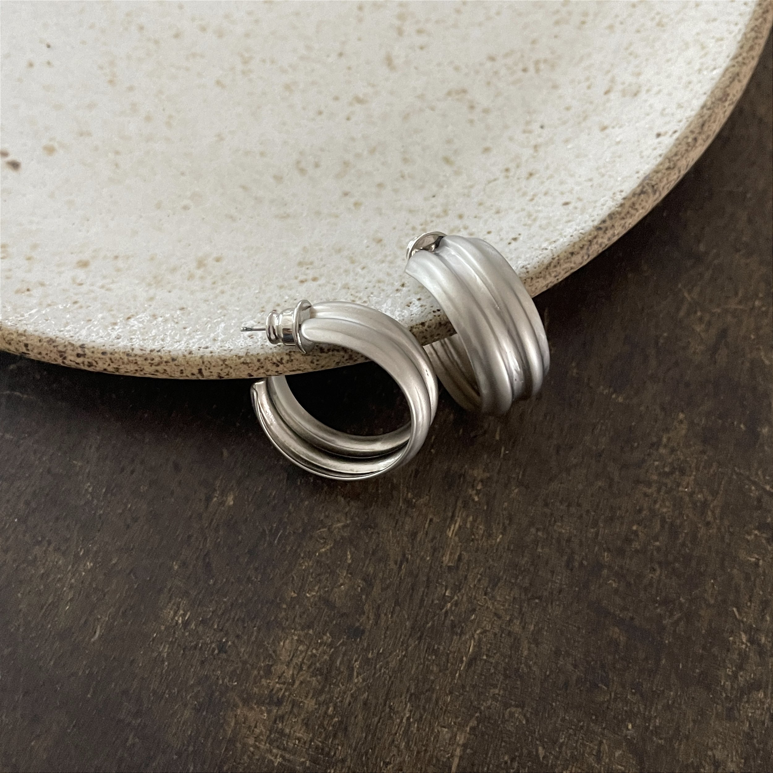 argola ródio fosco com relevo, fazendo parecer dupla, leve e fácil de combinar - bijuteria
