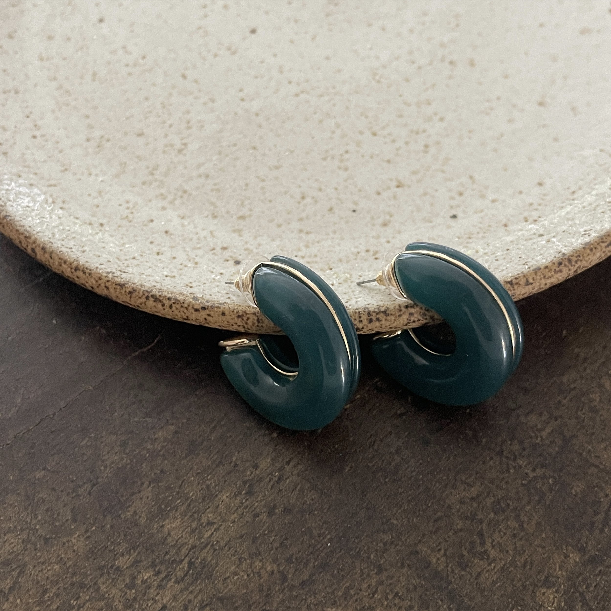 argola de resina na cor verde esmeralda com uma linha dourada no meio - bijuteria
