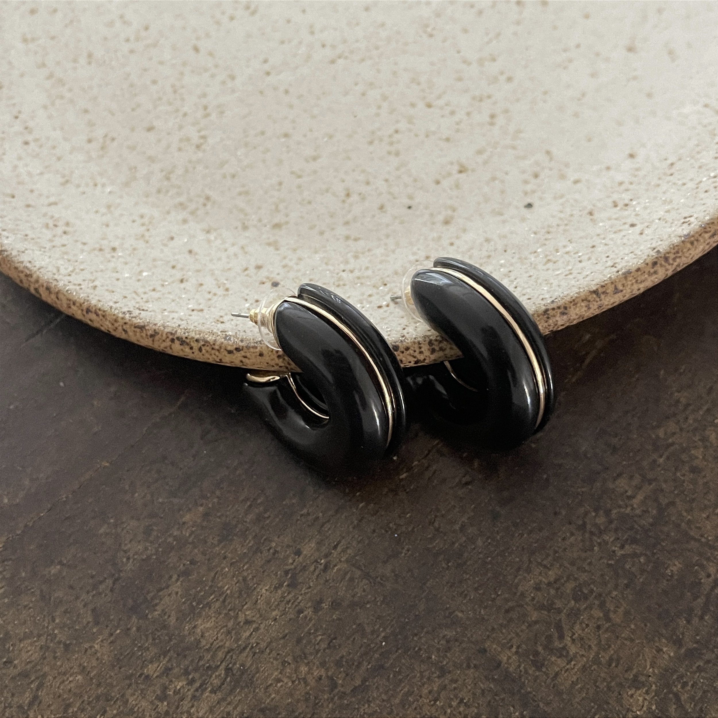 argola de resina na cor fumê com uma linha dourada no meio - bijuteria