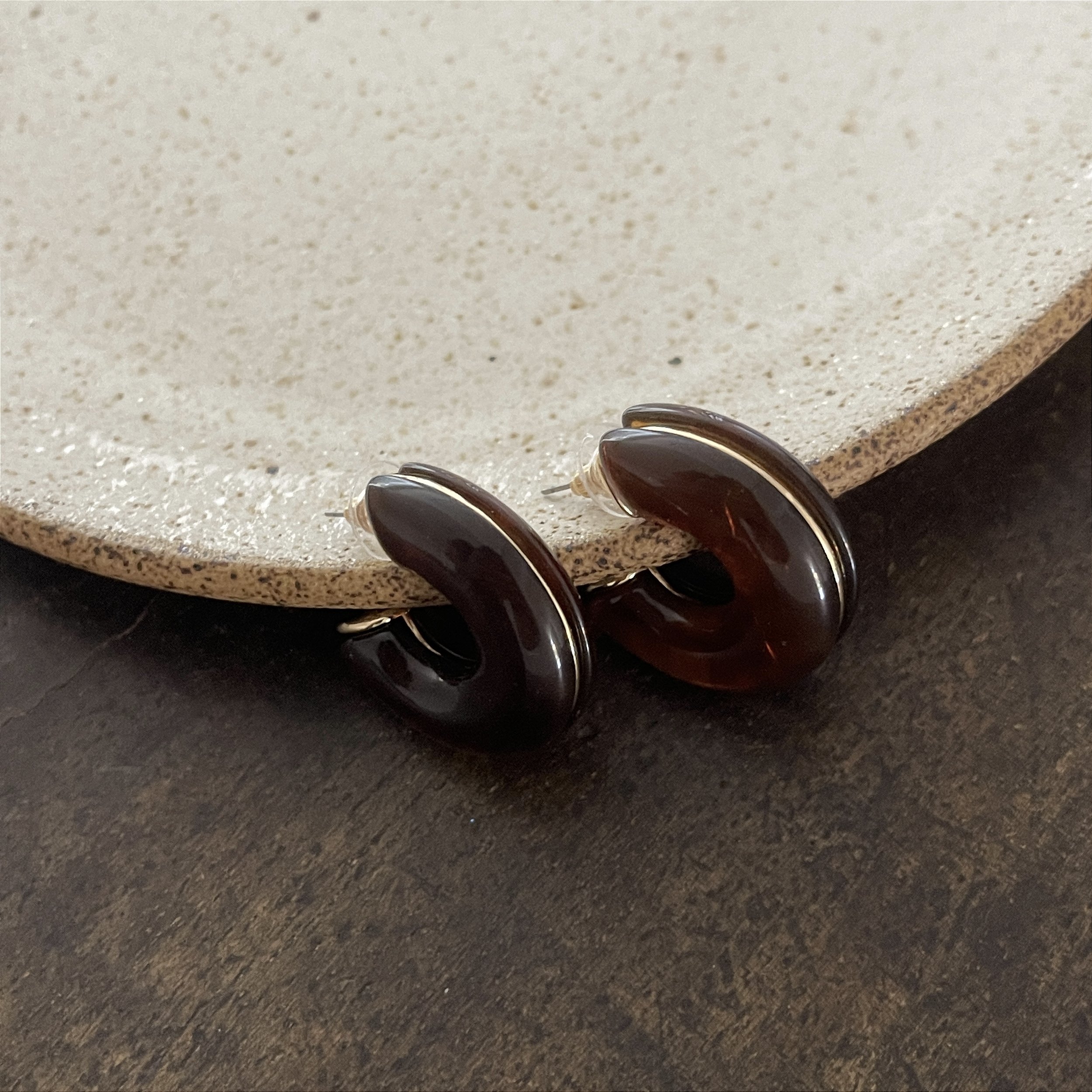 argola de resina na cor tartaruga com uma linha dourada no meio - bijuteria