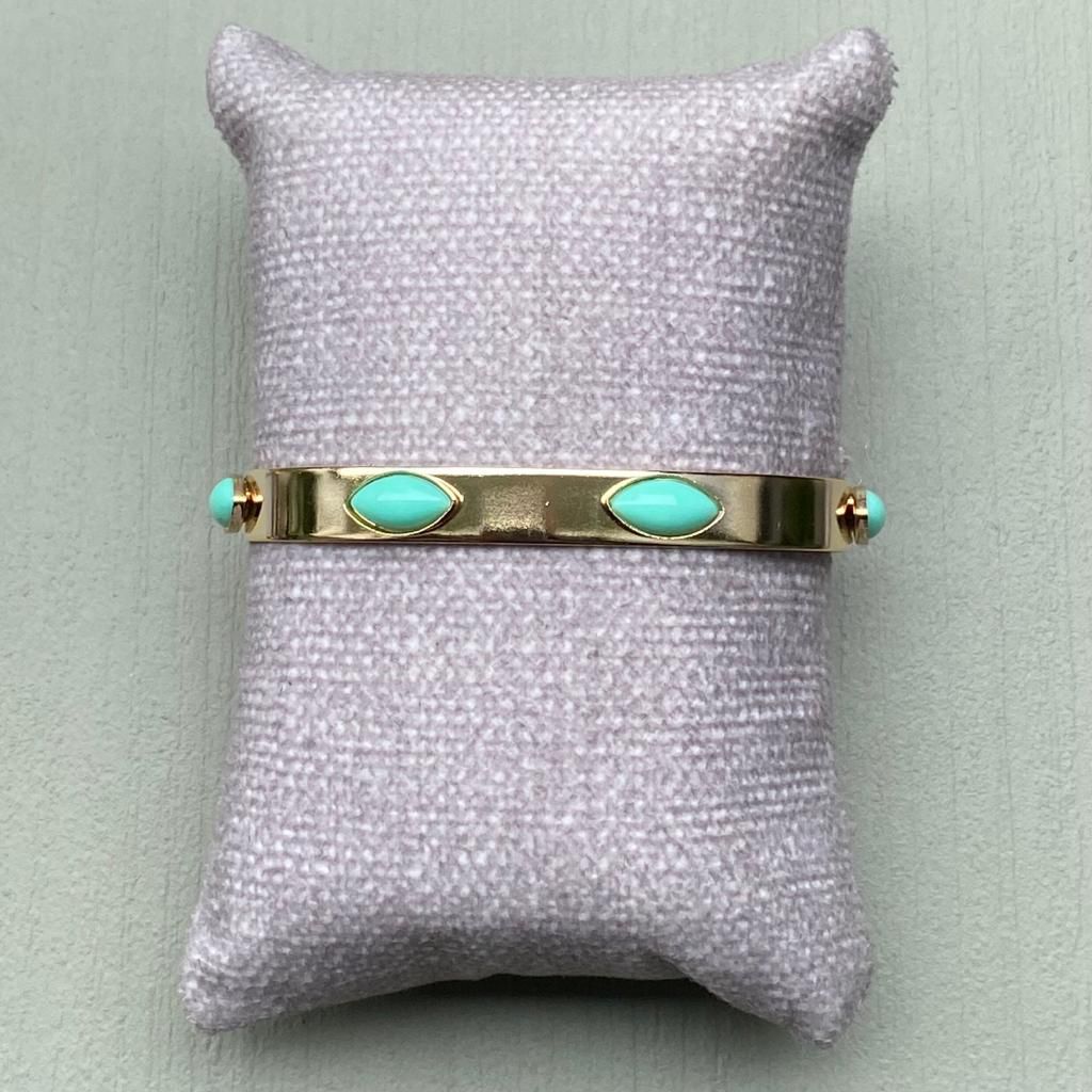 Bracelete ajustavel, com pedras de resina turquesa.