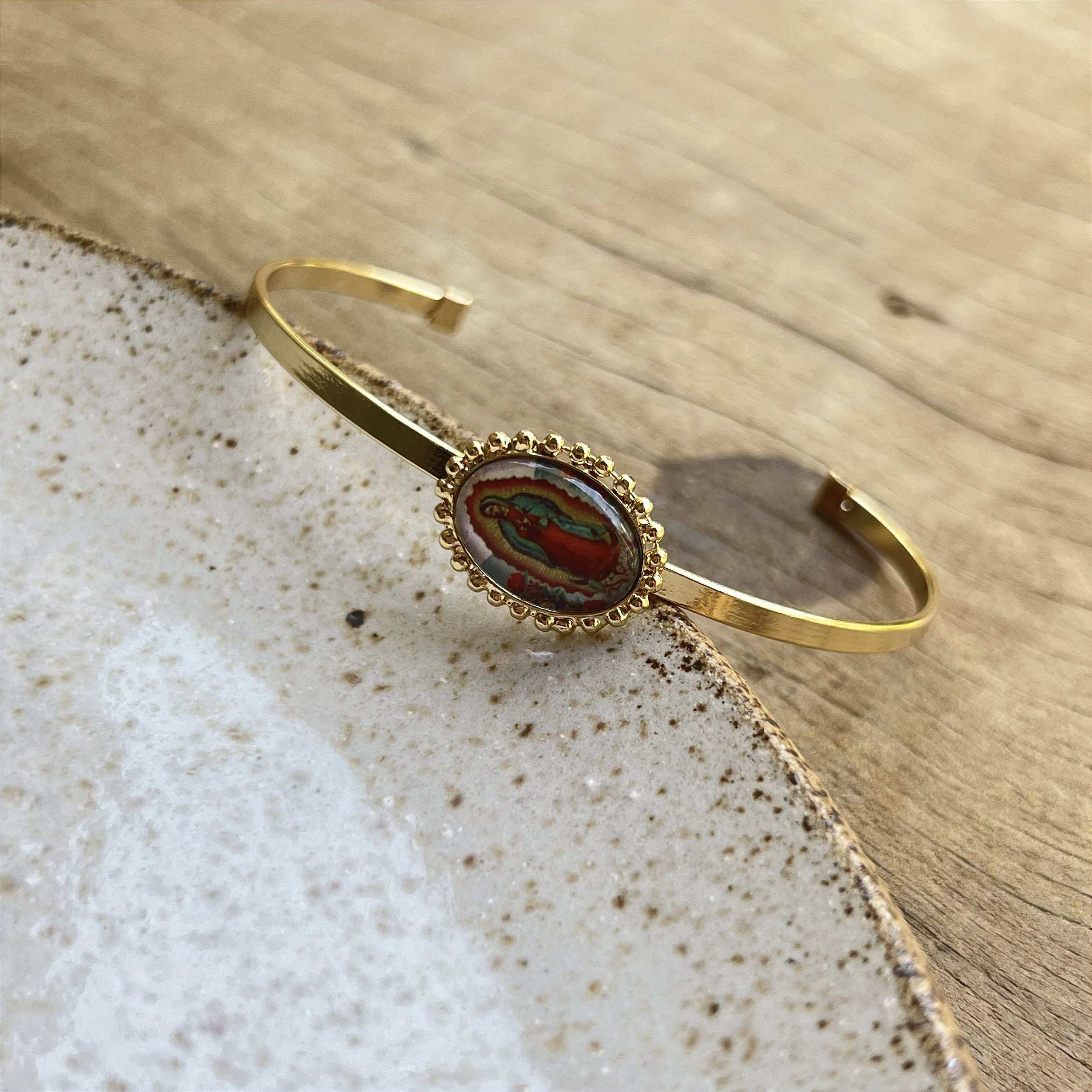 Bracelete com imagem colorida em resina, deitada semijoia, Banho de Ouro 18k