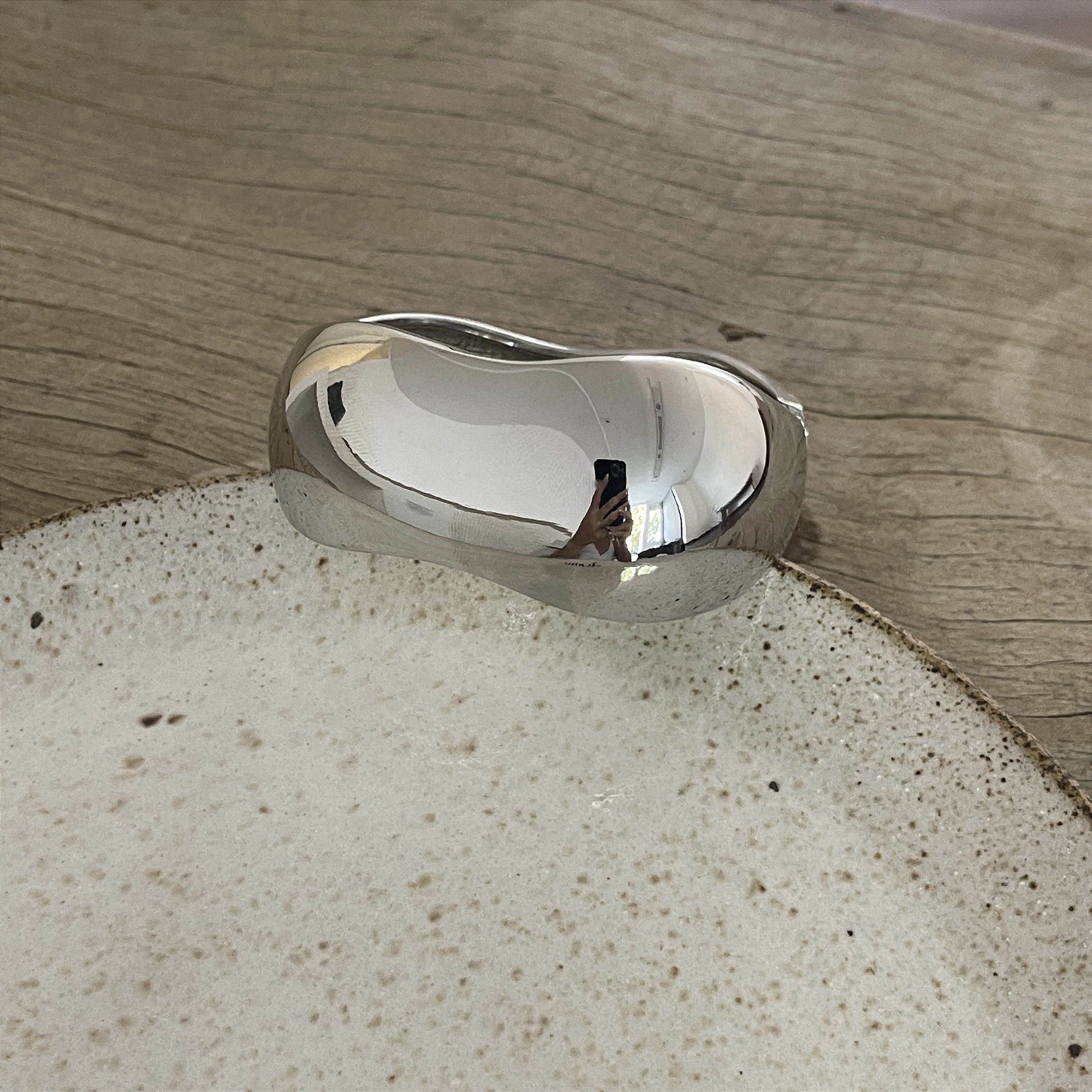 bracelete abre e fecha forma organica, ródio brilho - biju