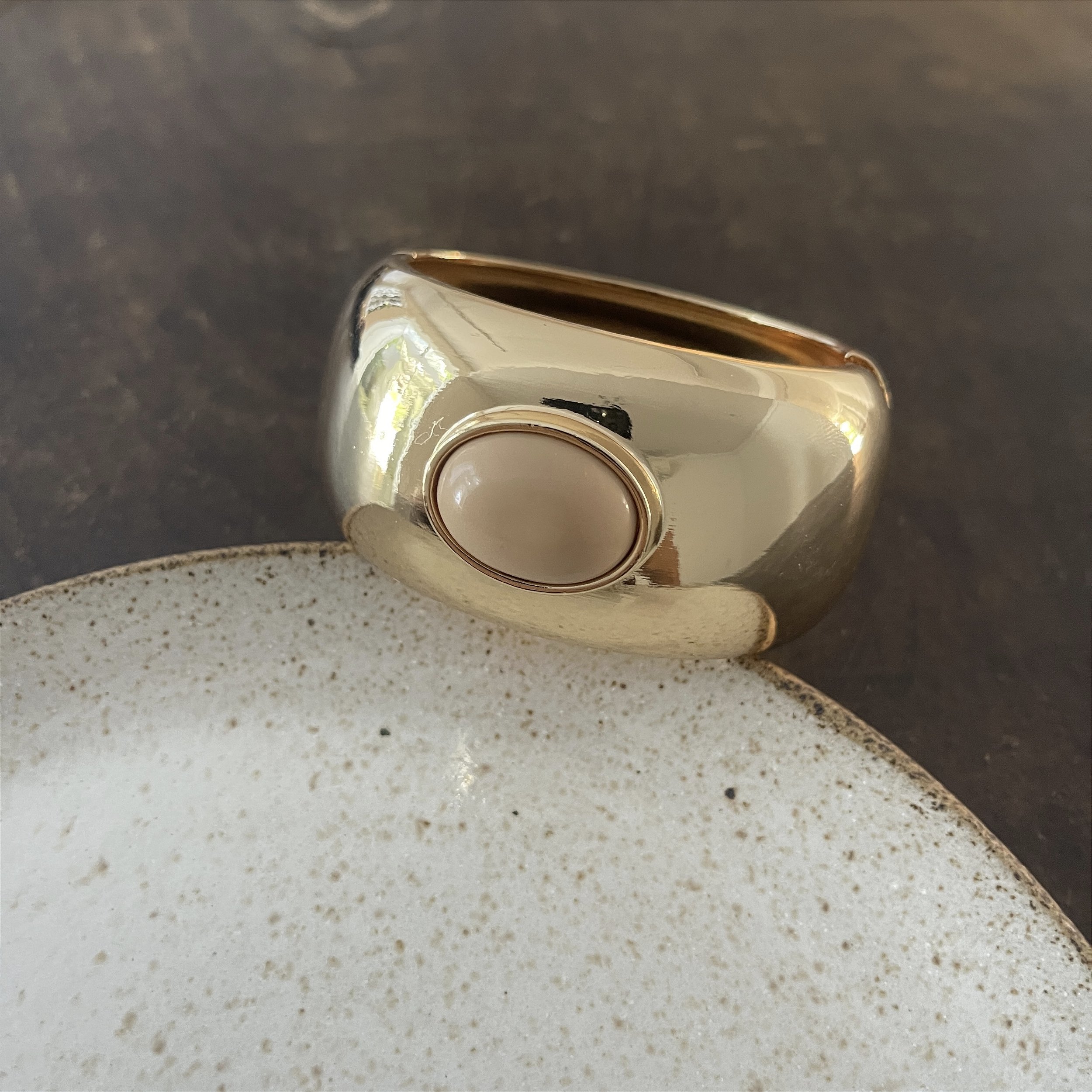 Bracelete largo dourado brilho com uma pedra no meio. Design moderno, elegante e fácil de combinar —  bijuteria