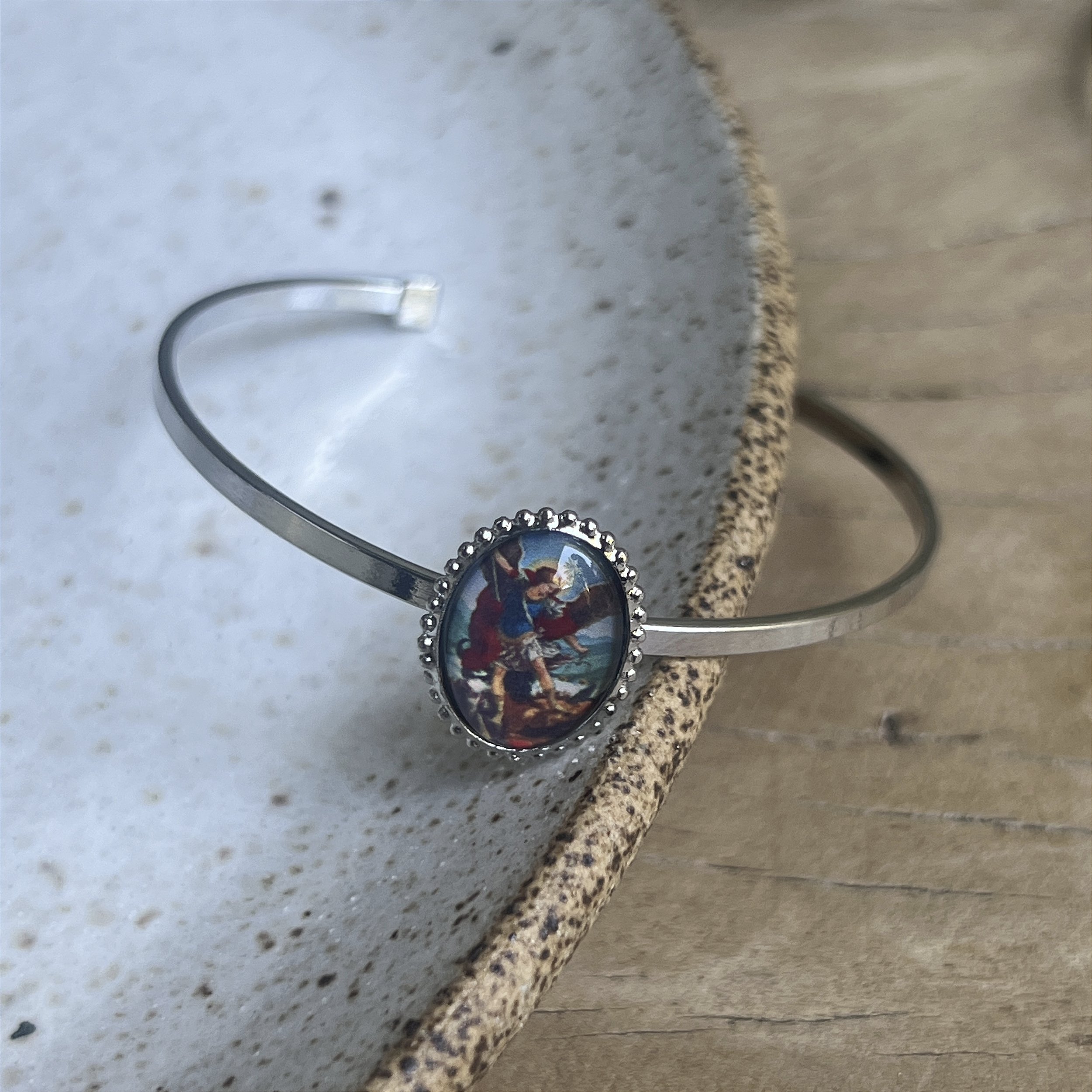 Bracelete com imagem colorida em resina, semijoia, Ródio