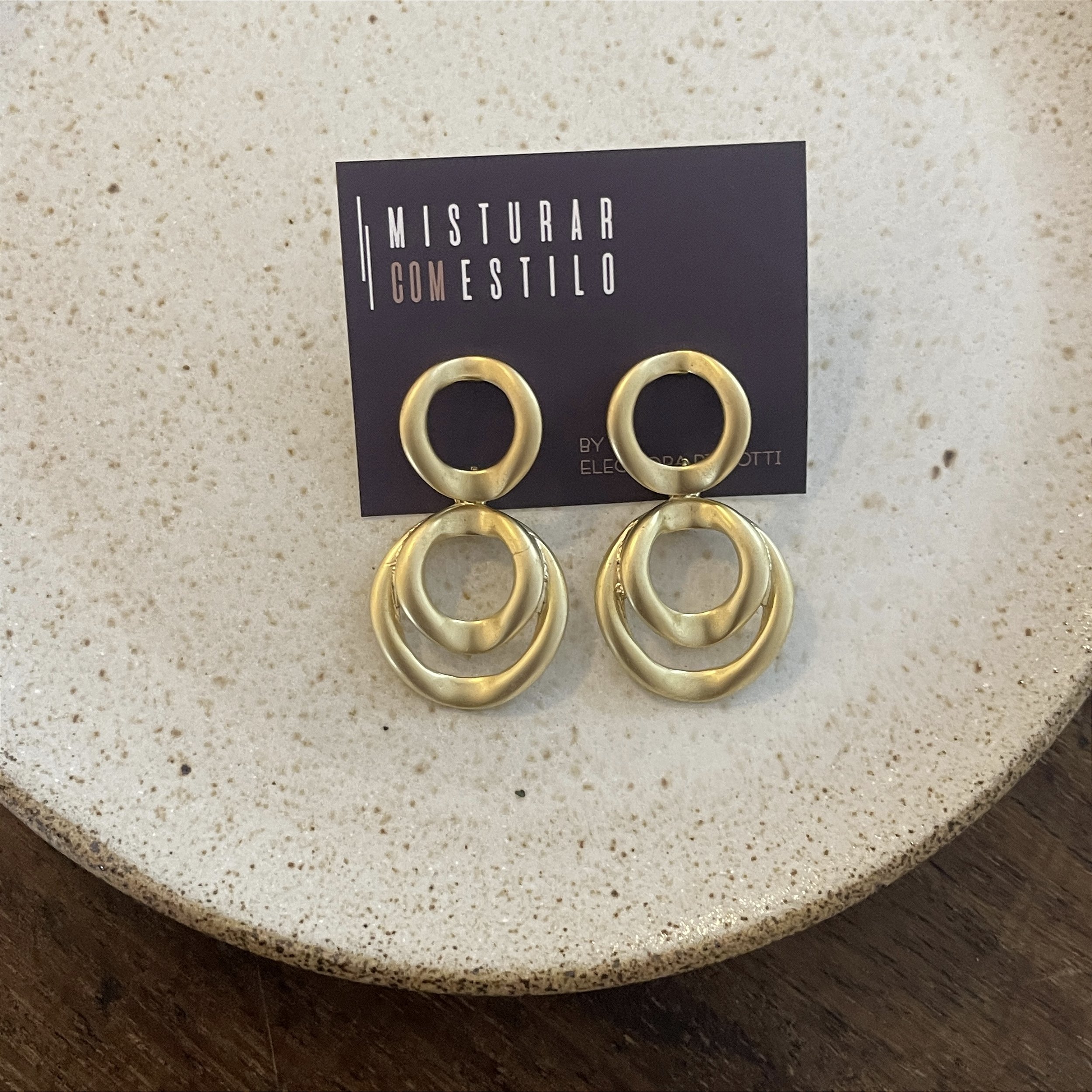 brinco redondo duplo , dourado fosco - semijoia