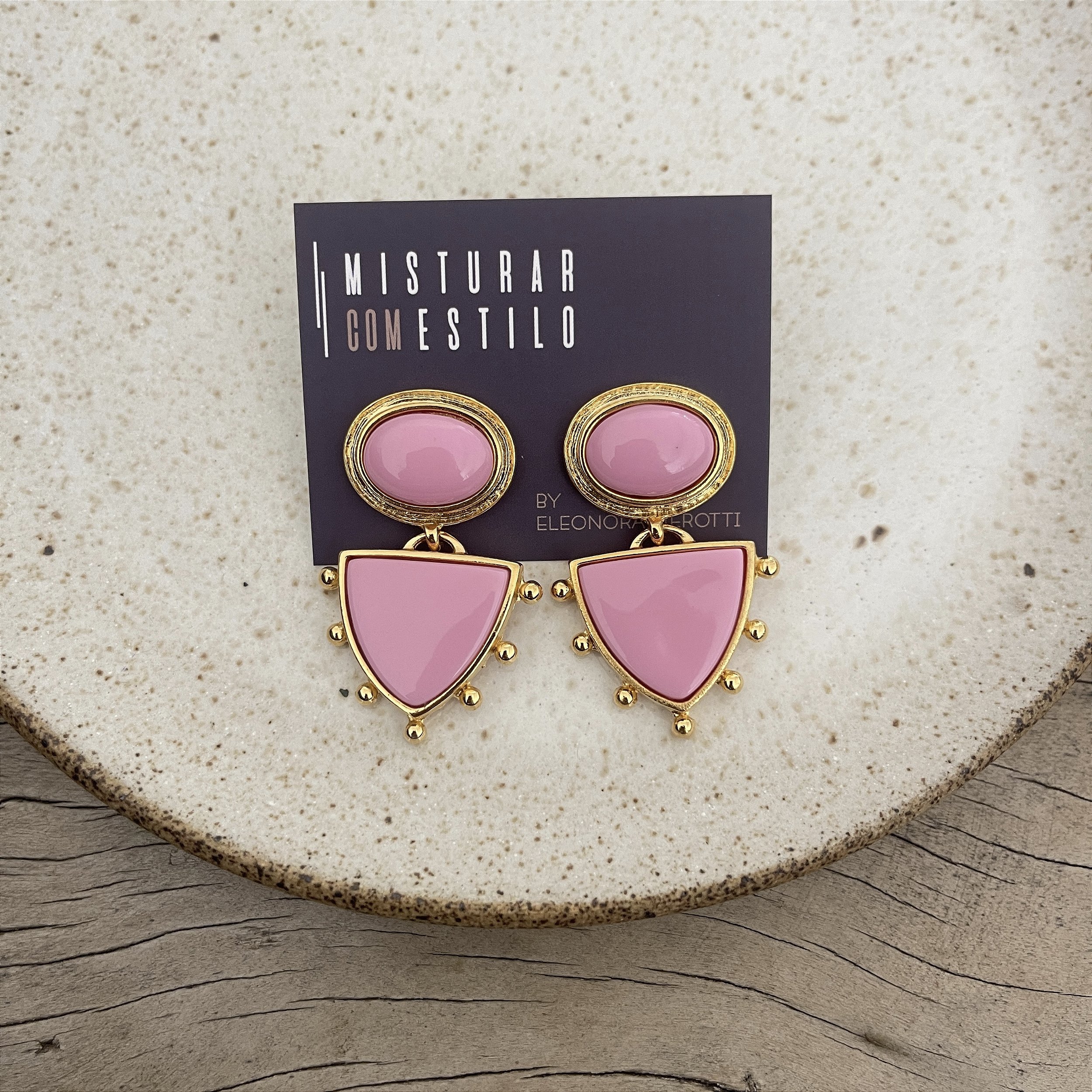 Brinco Aurora Duplo Triângulo - Rosa Bebê