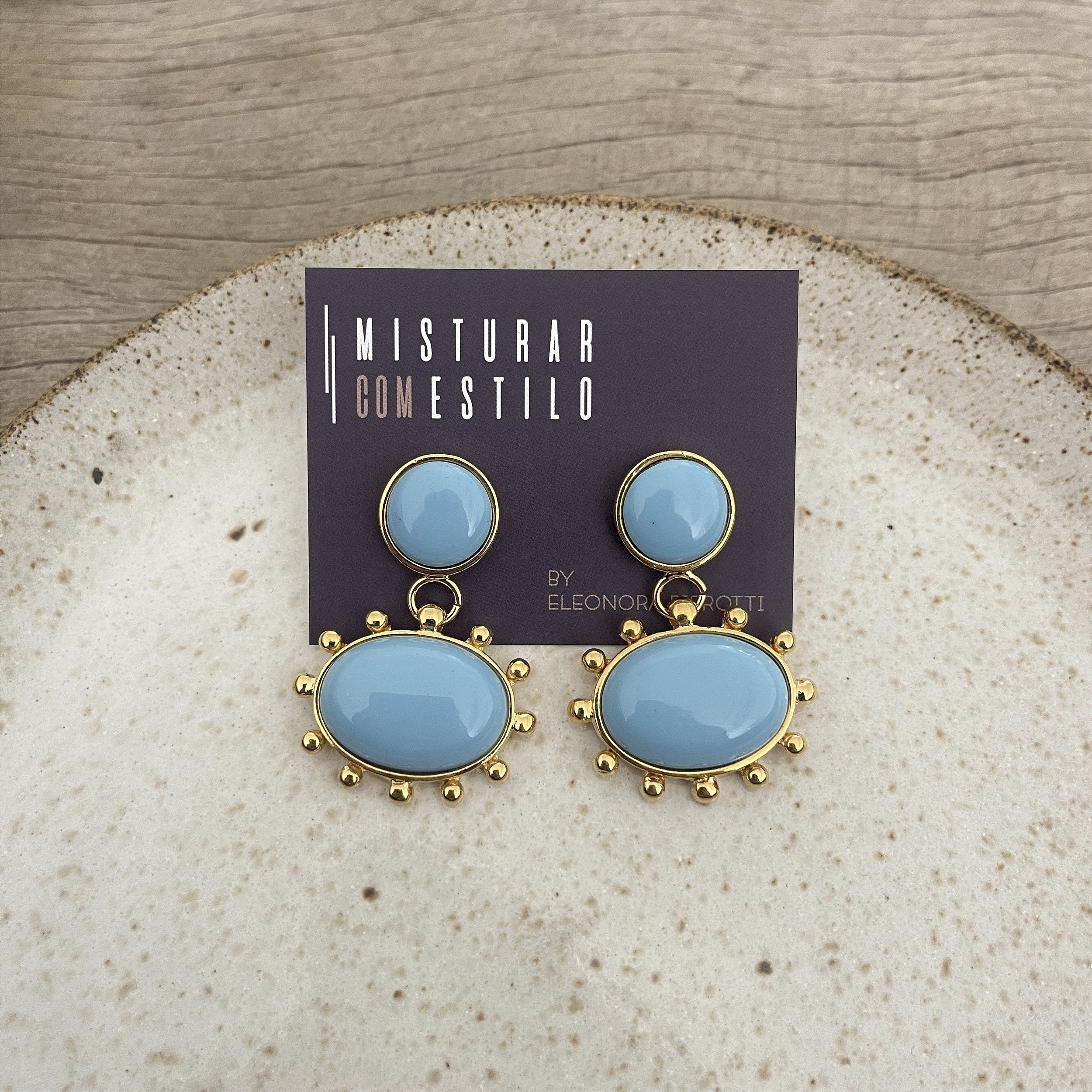 Brinco Aurora Redondo e Oval - Azul Bebê