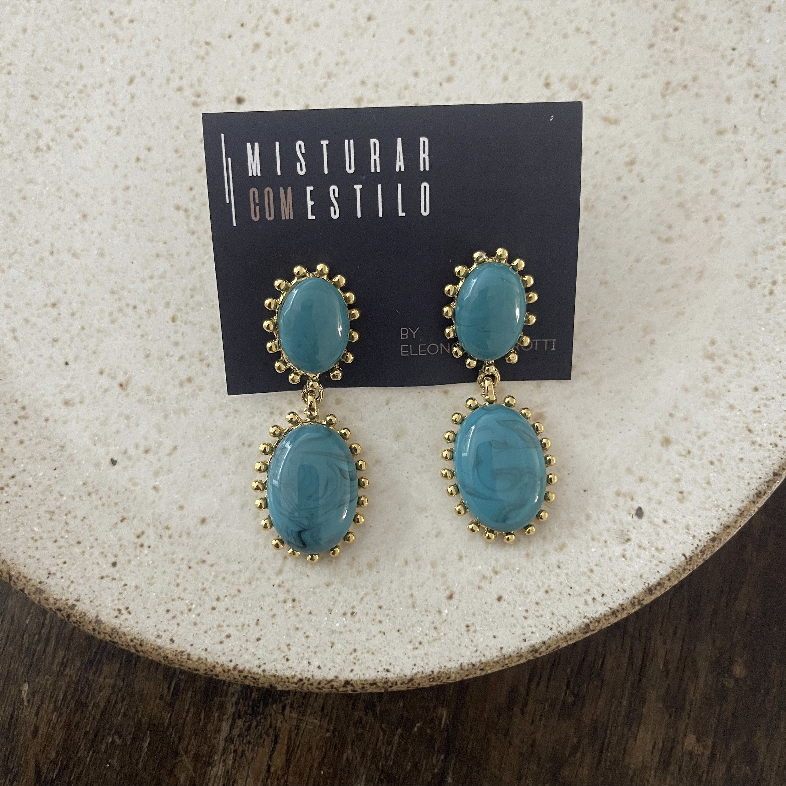 Brinco Aurora Resina Duplo - Turquesa Rajado
