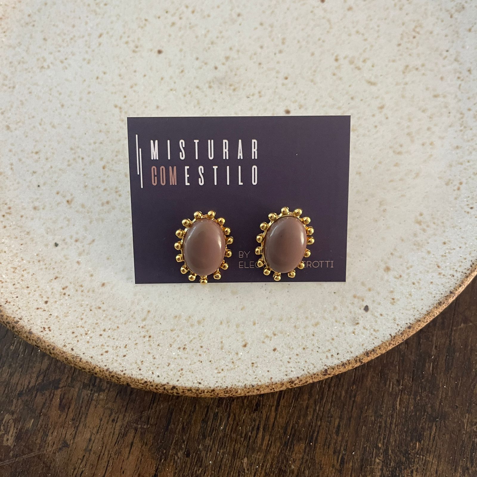Brinco Aurora Resina Oval - P - Capuccino