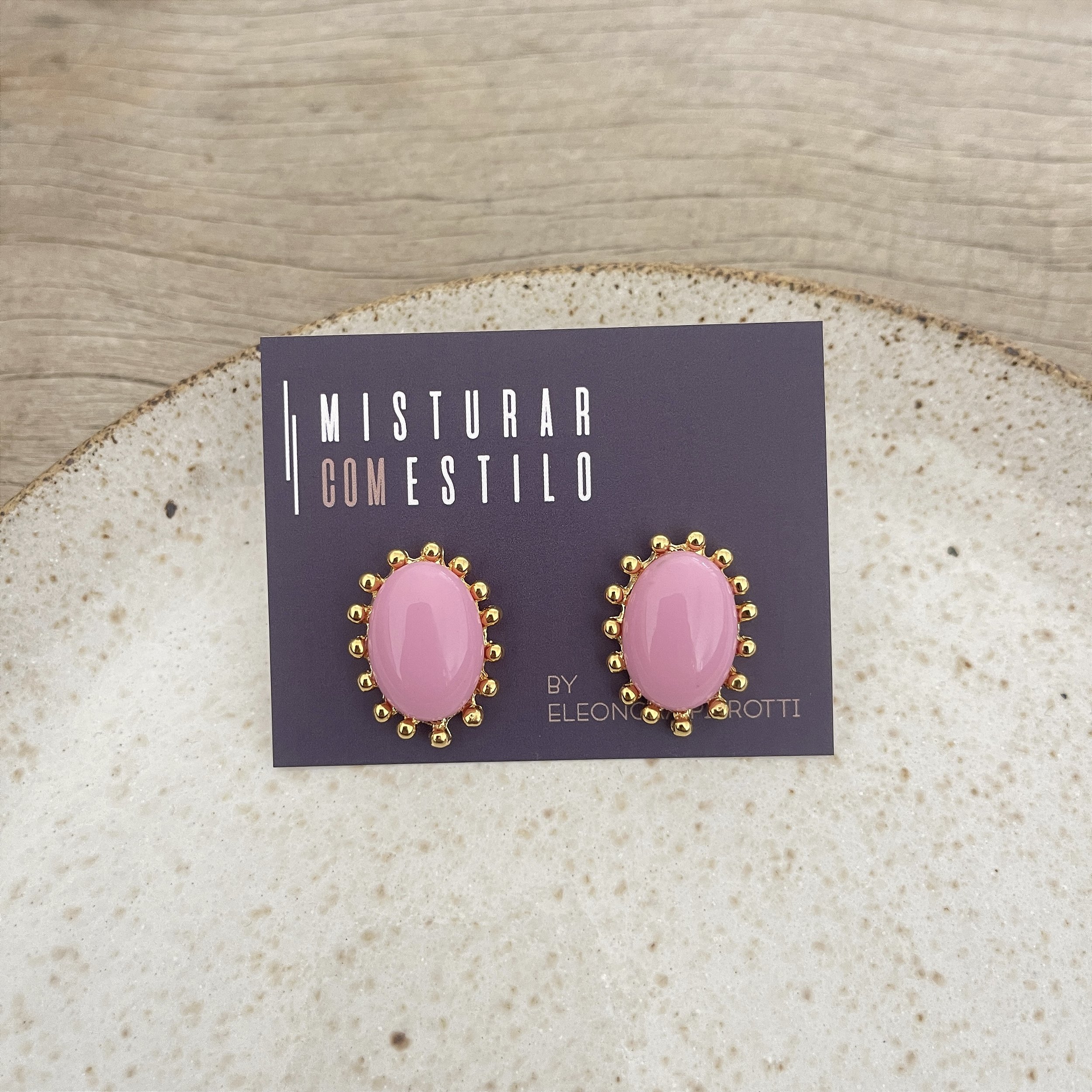 Brinco Aurora Resina Oval - P - Rosa Bebê