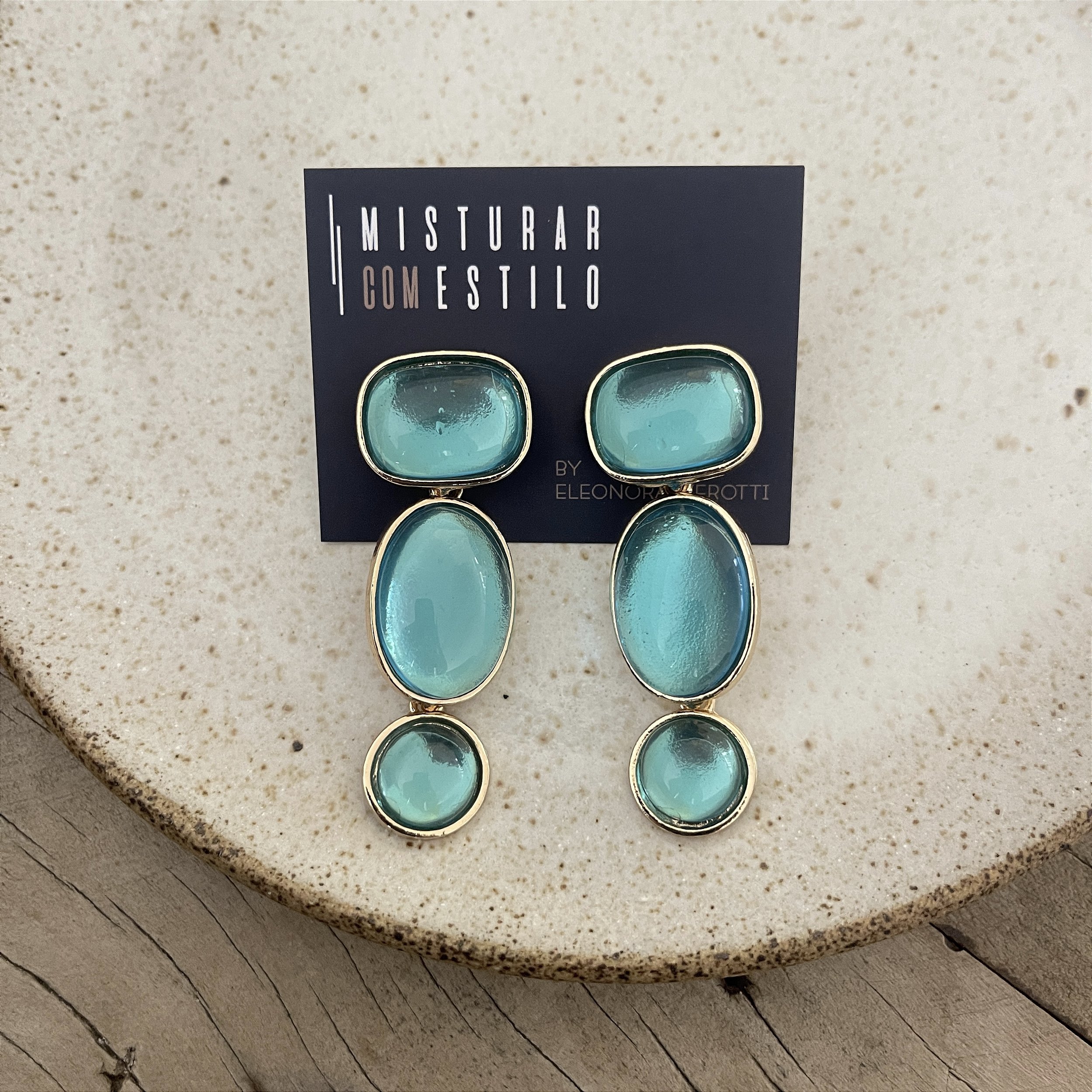 brinco com uma forma retangular, oval e redonda, dourado - biju