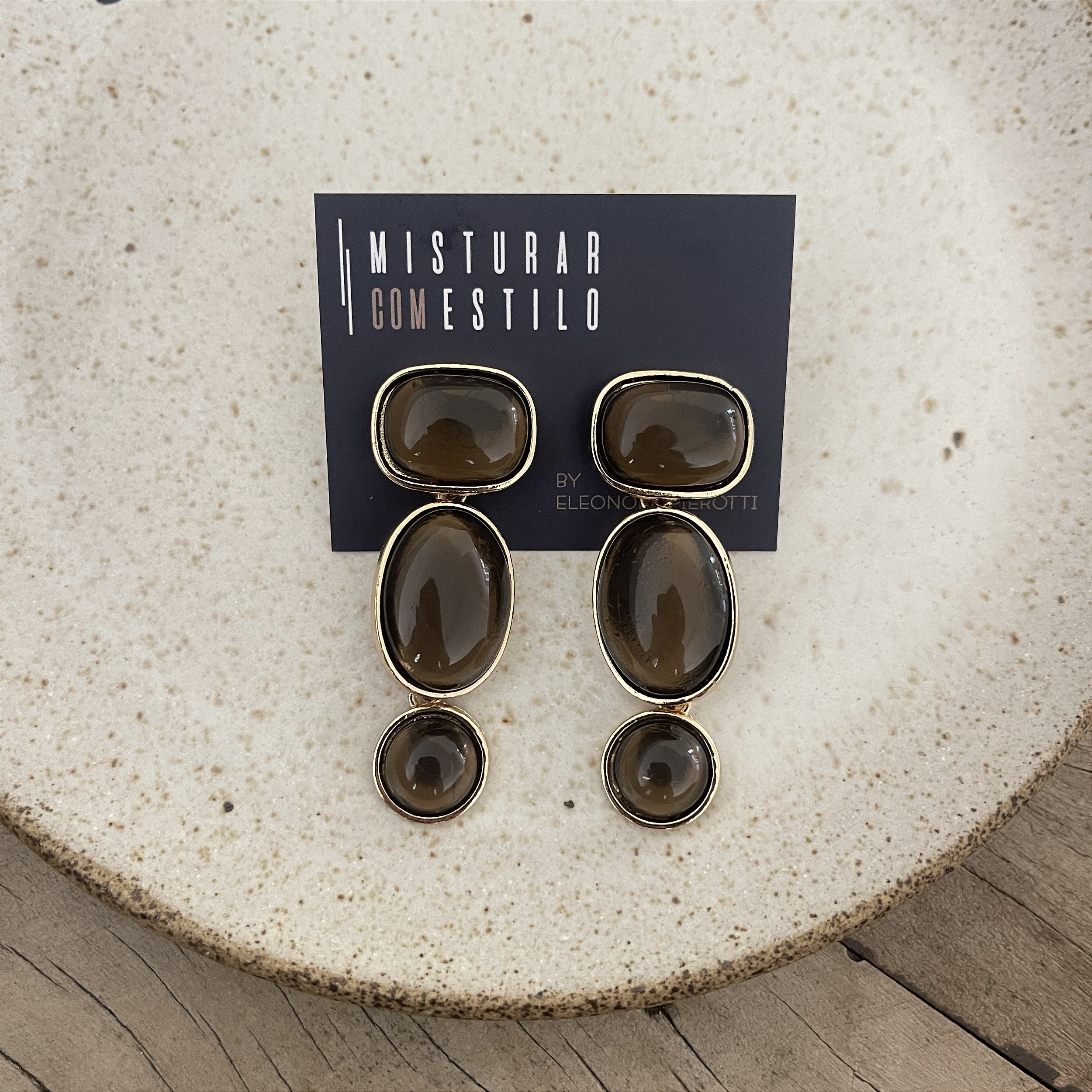 brinco com uma forma retangular, oval e redonda, dourado - biju