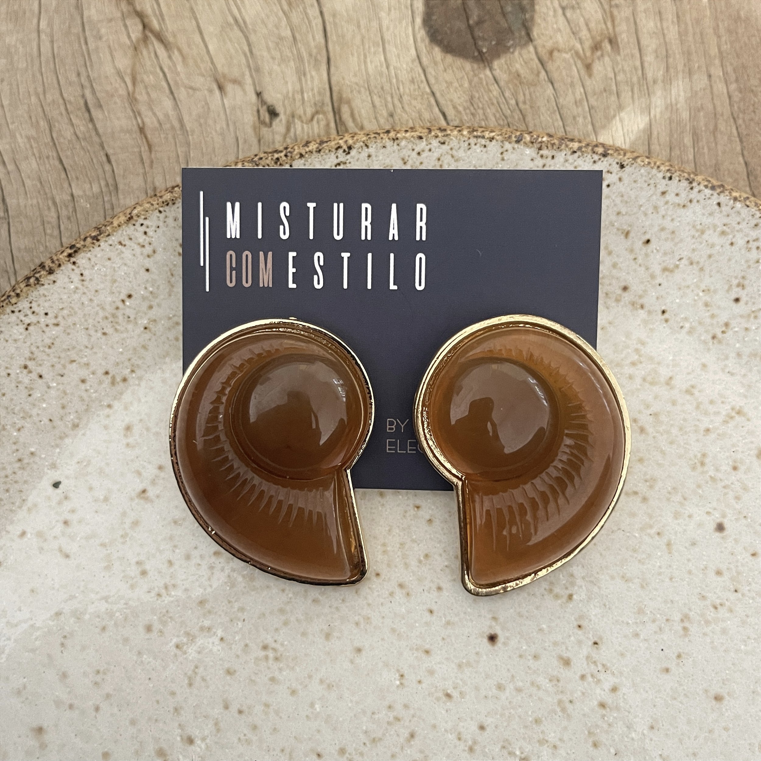 brinco concha de caracol caramelo, dourado - biju