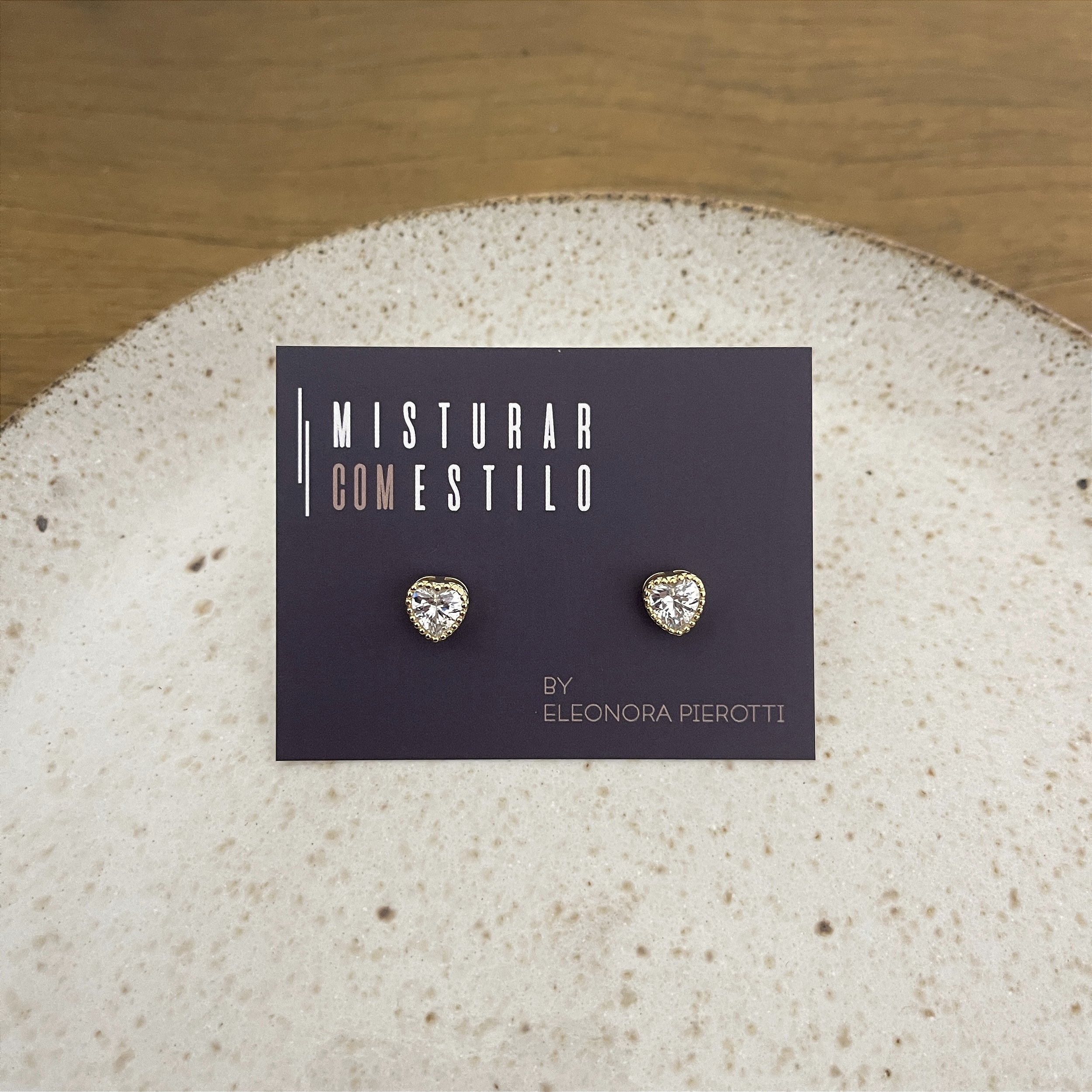 brinco coração de zircônia, dourado - semijoia, ouro18k