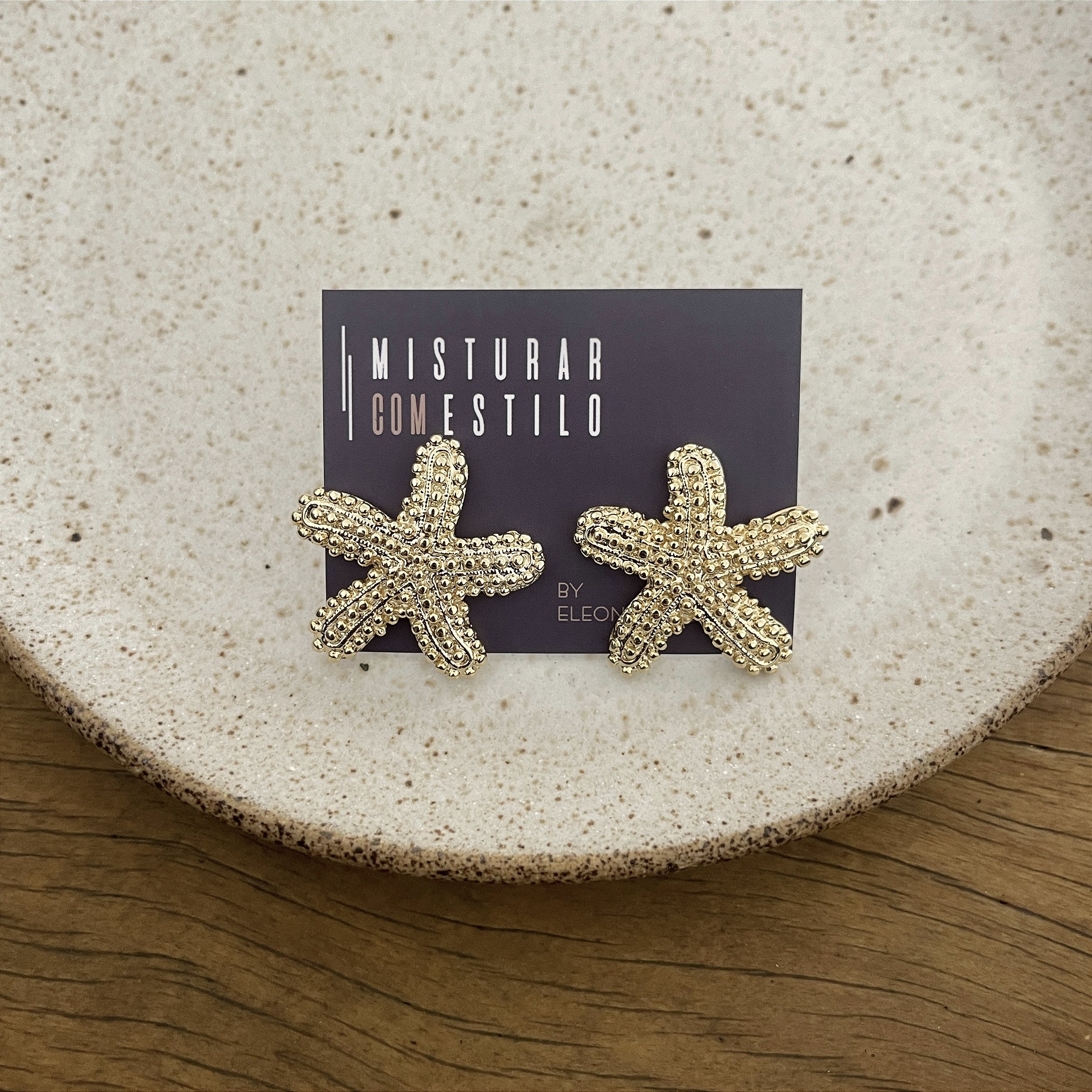 brinco estrela do mar com mini esferas, dourado - semijoia