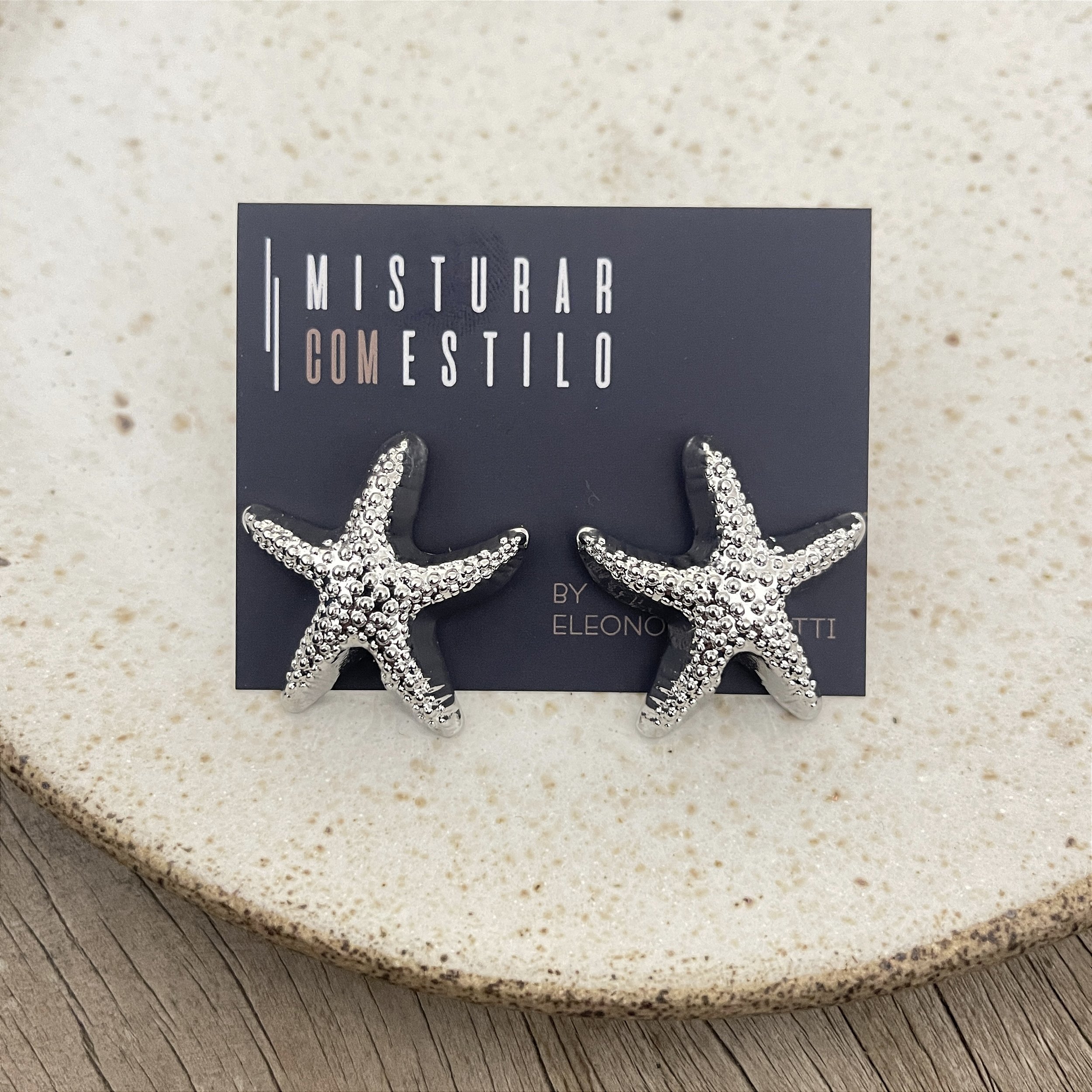 brinco estrela do mar, ródio - biju