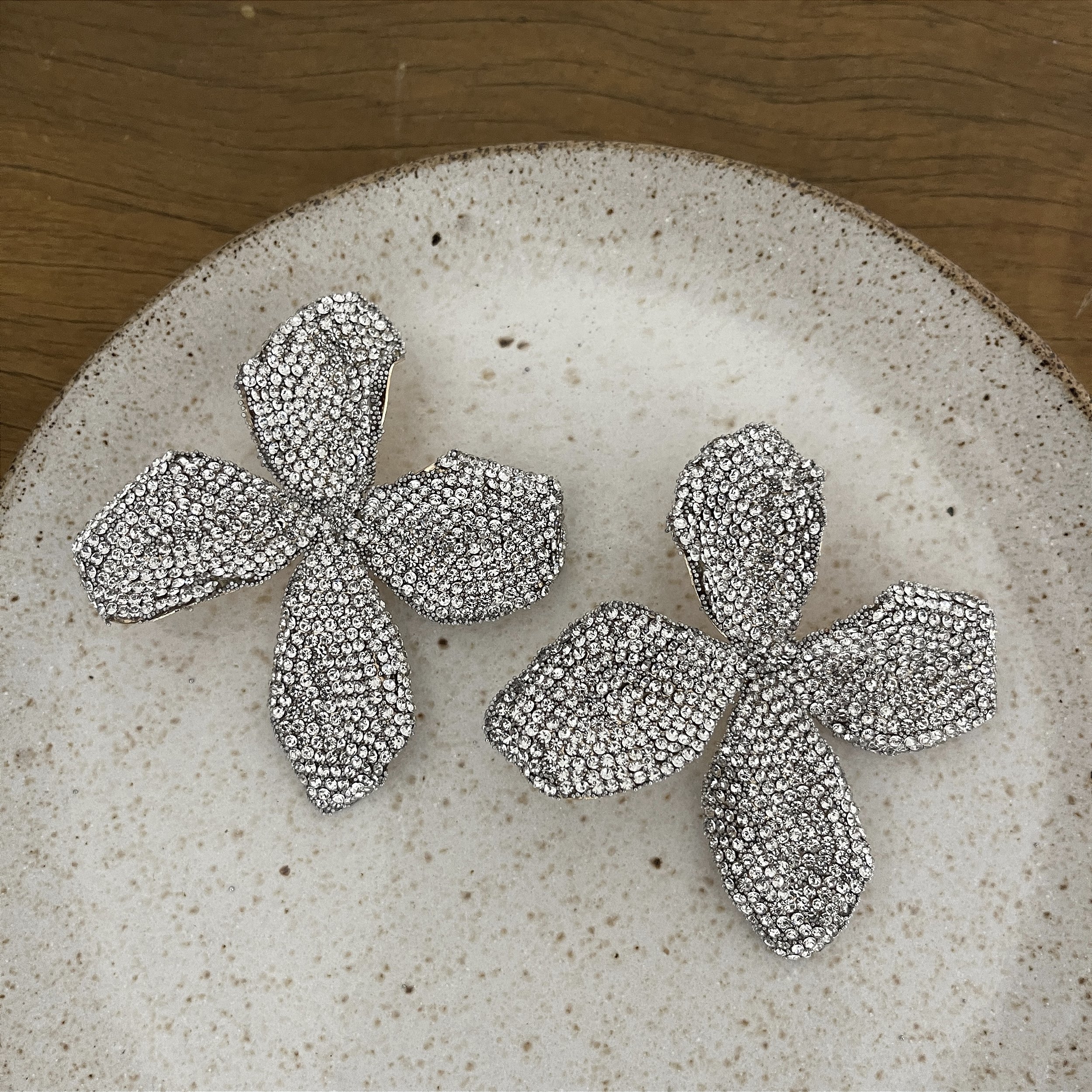brinco de flor com brilho e esferinhas, acabamento dourado, biju