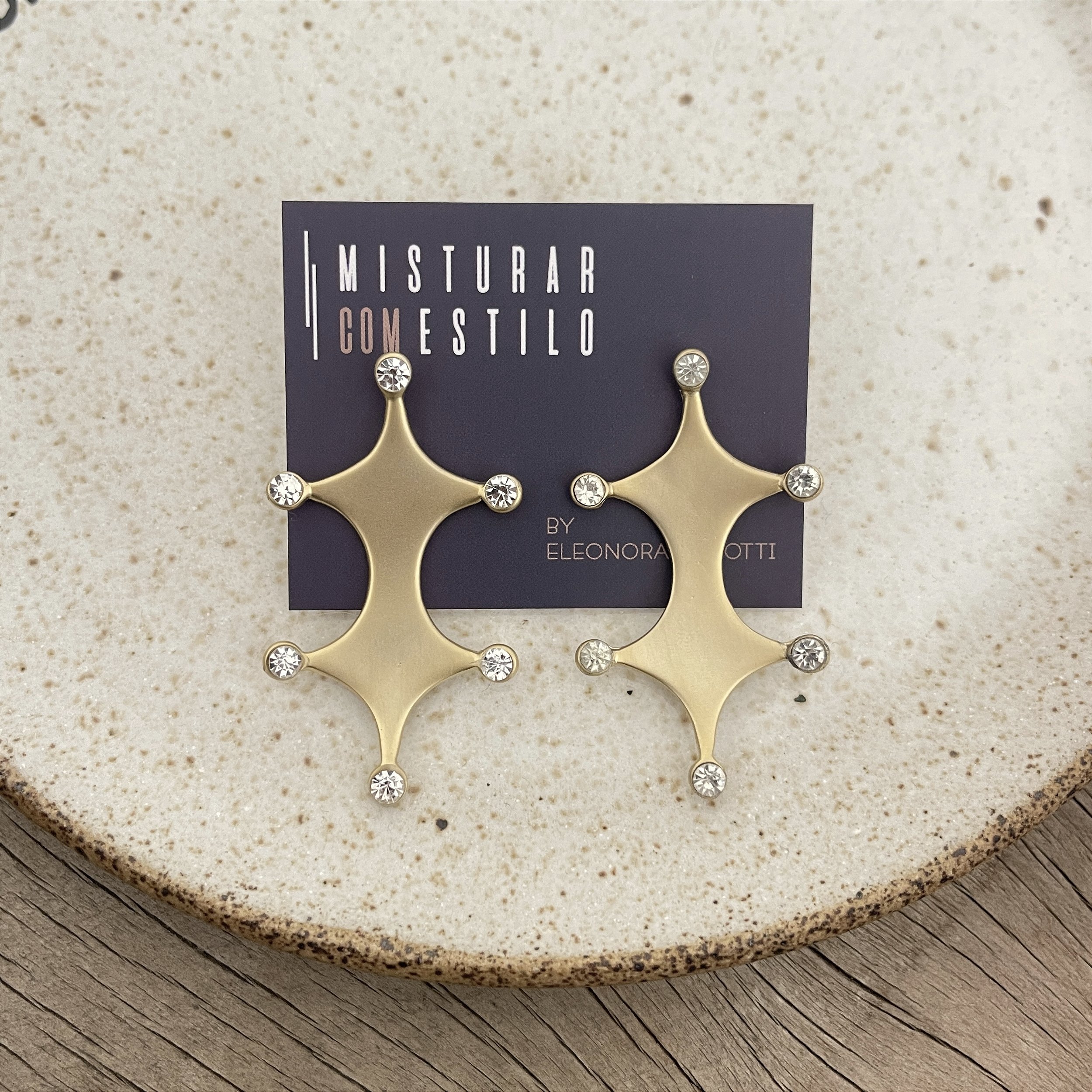 brinco seis pontas com zircônia , dourado fosco - semijoia