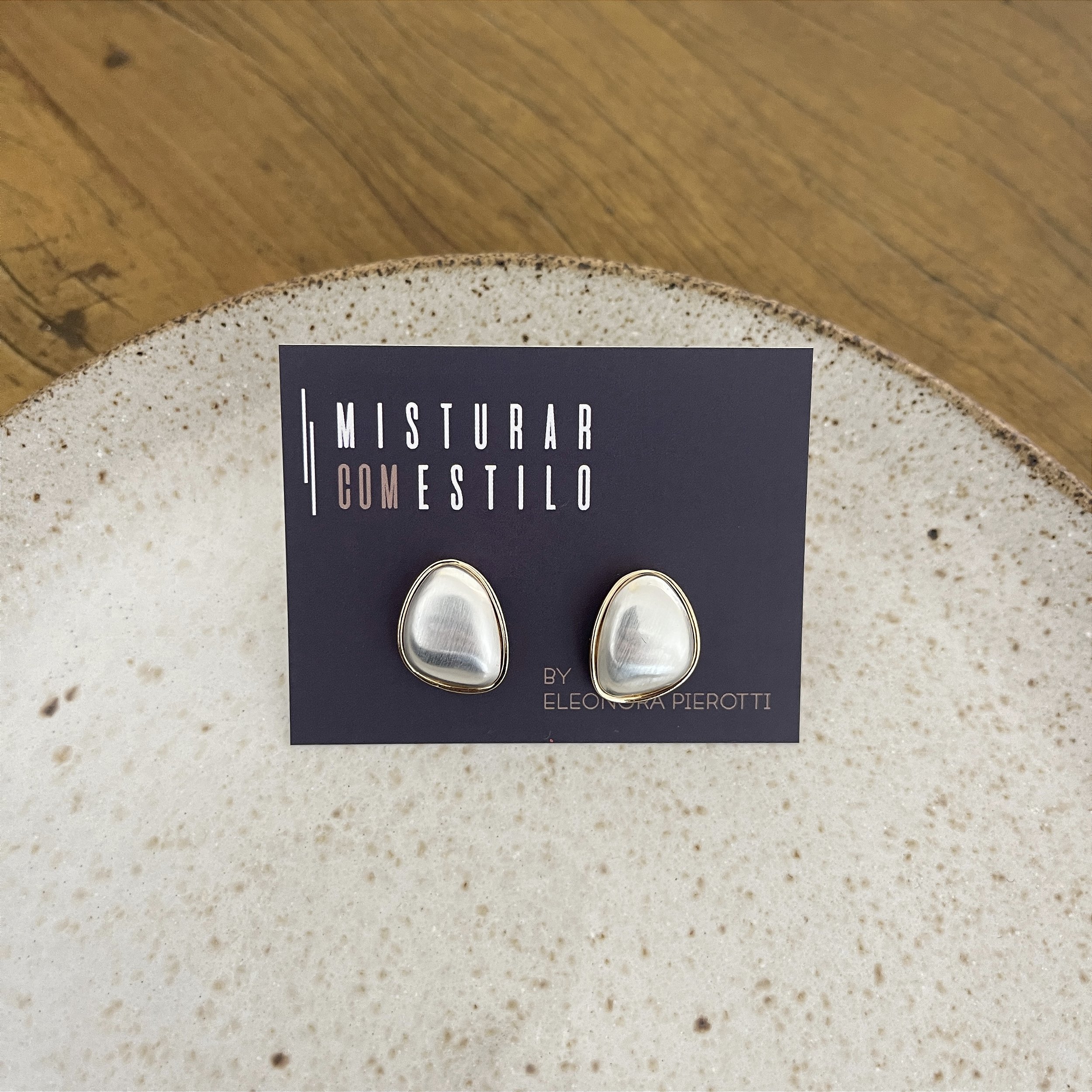 brinco tipo oval delicado, ródio e dourado fosco - biju