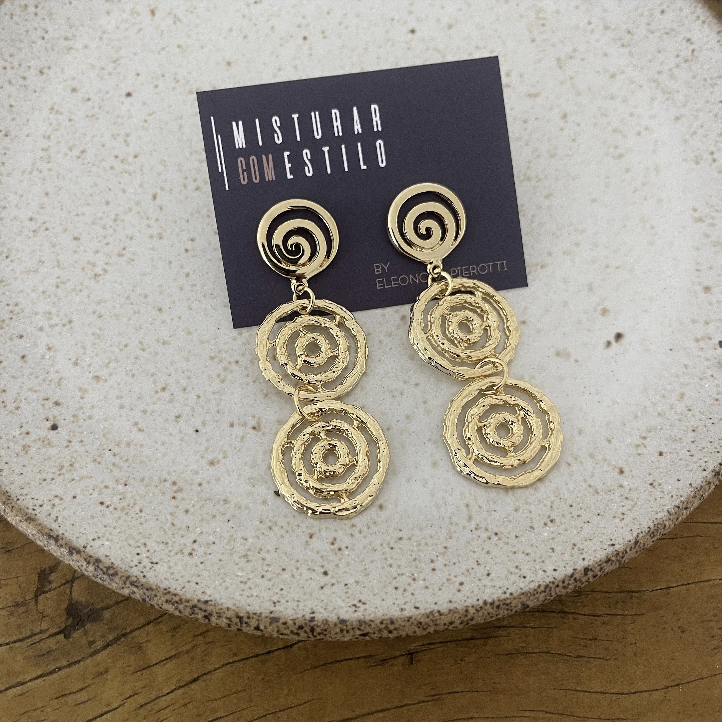 brinco trio de espiral, dois canelados e um liso, dourado - semijoia