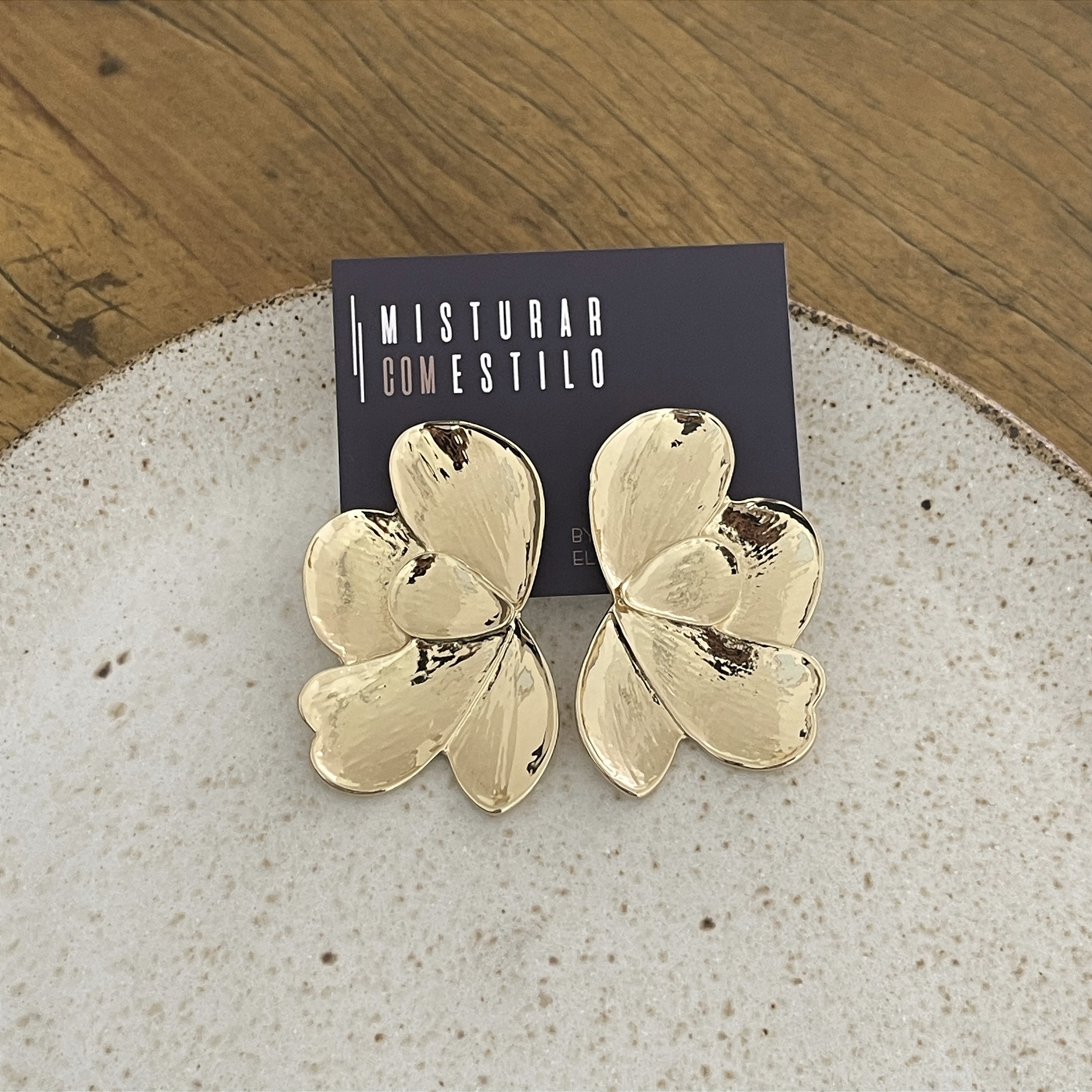 brinco meia flor dourado - biju