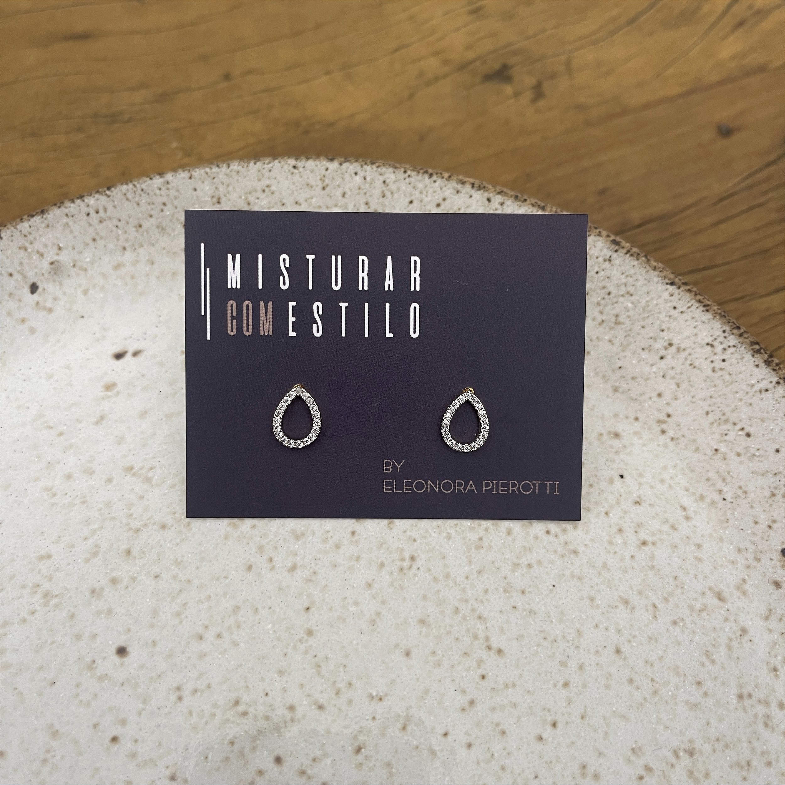 brinco gota vazada acabamento dourado e zircônia no ródio - semijoia