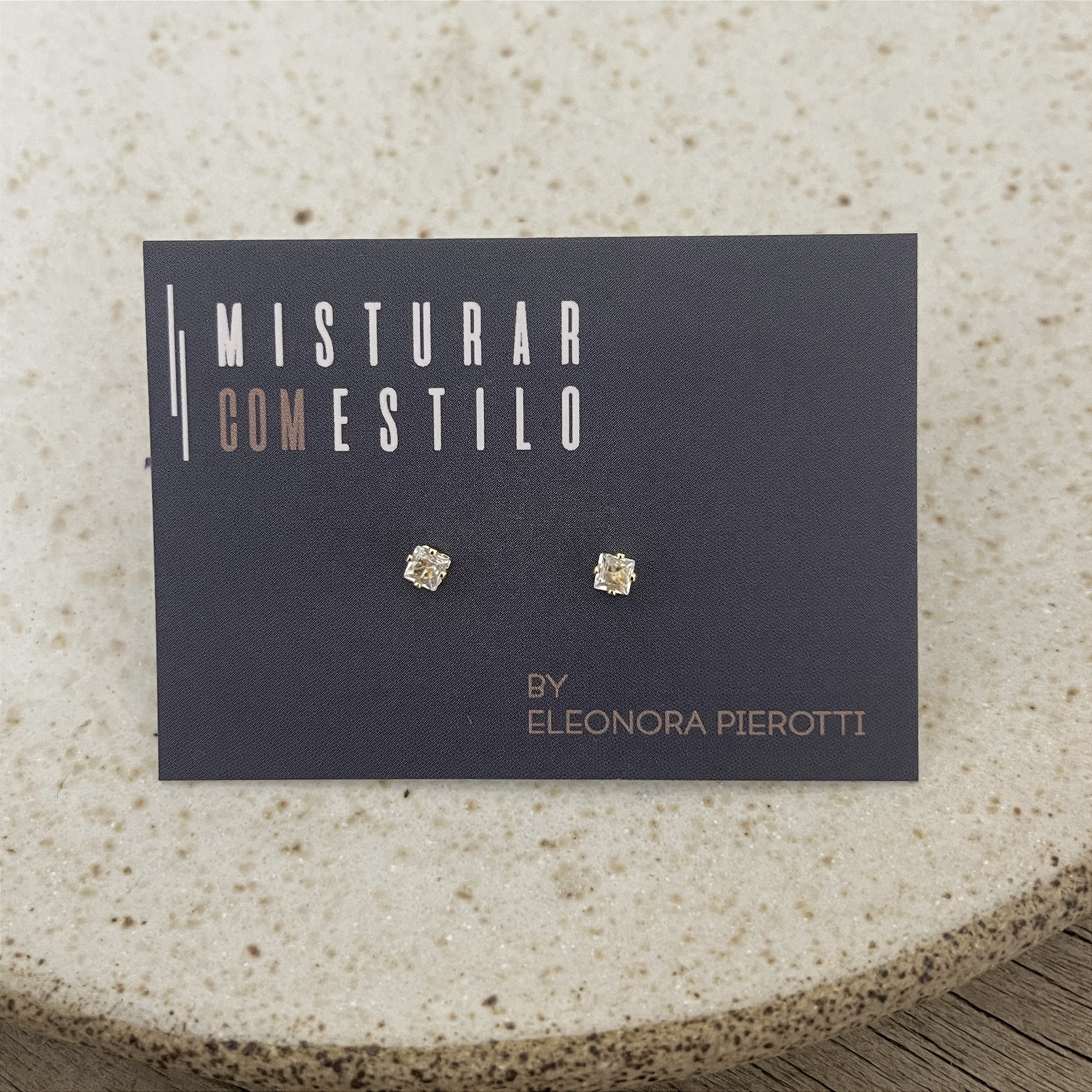 brinco ponto de luz quadrado, dourado - semijoia