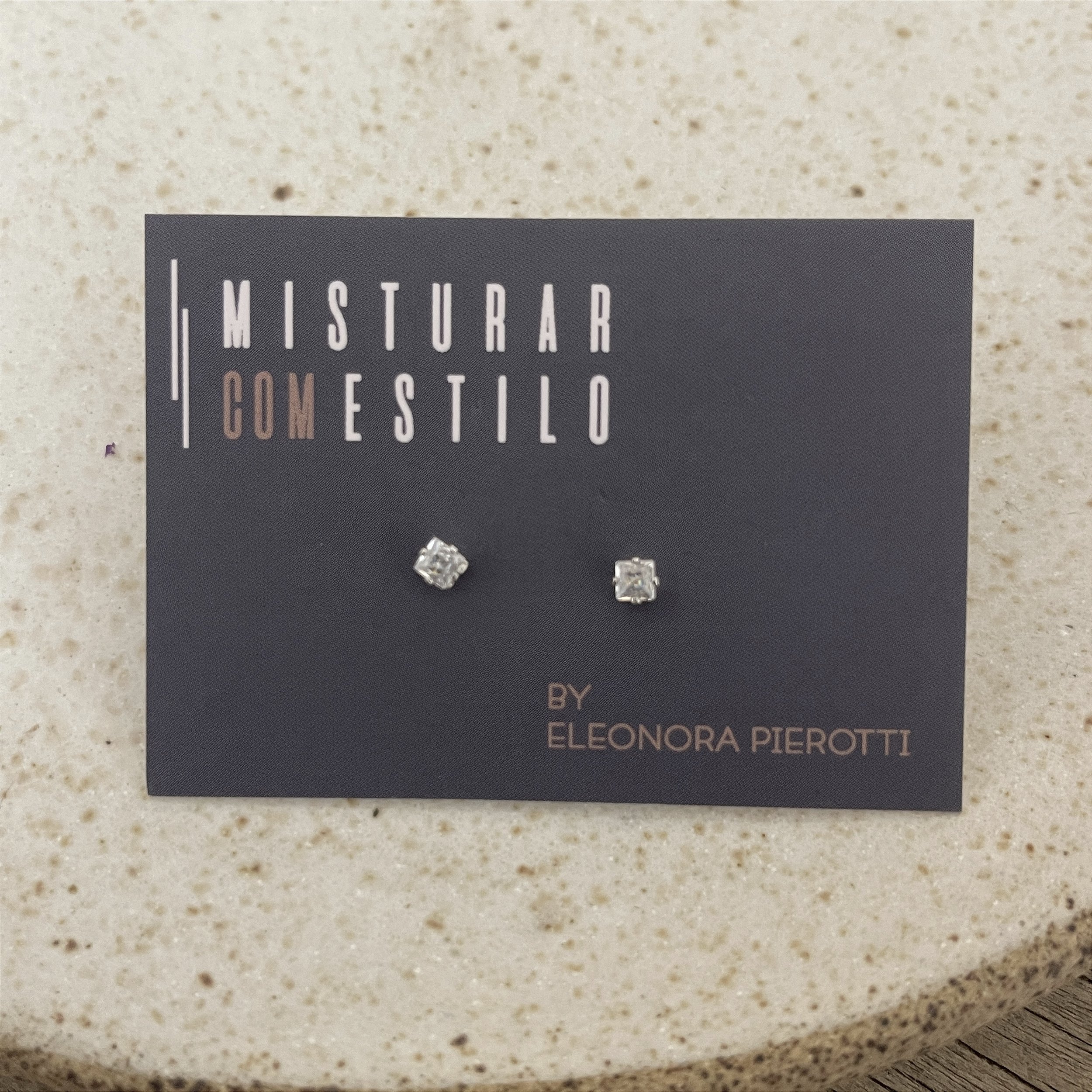 brinco ponto de luz quadrado, ródio - semijoia