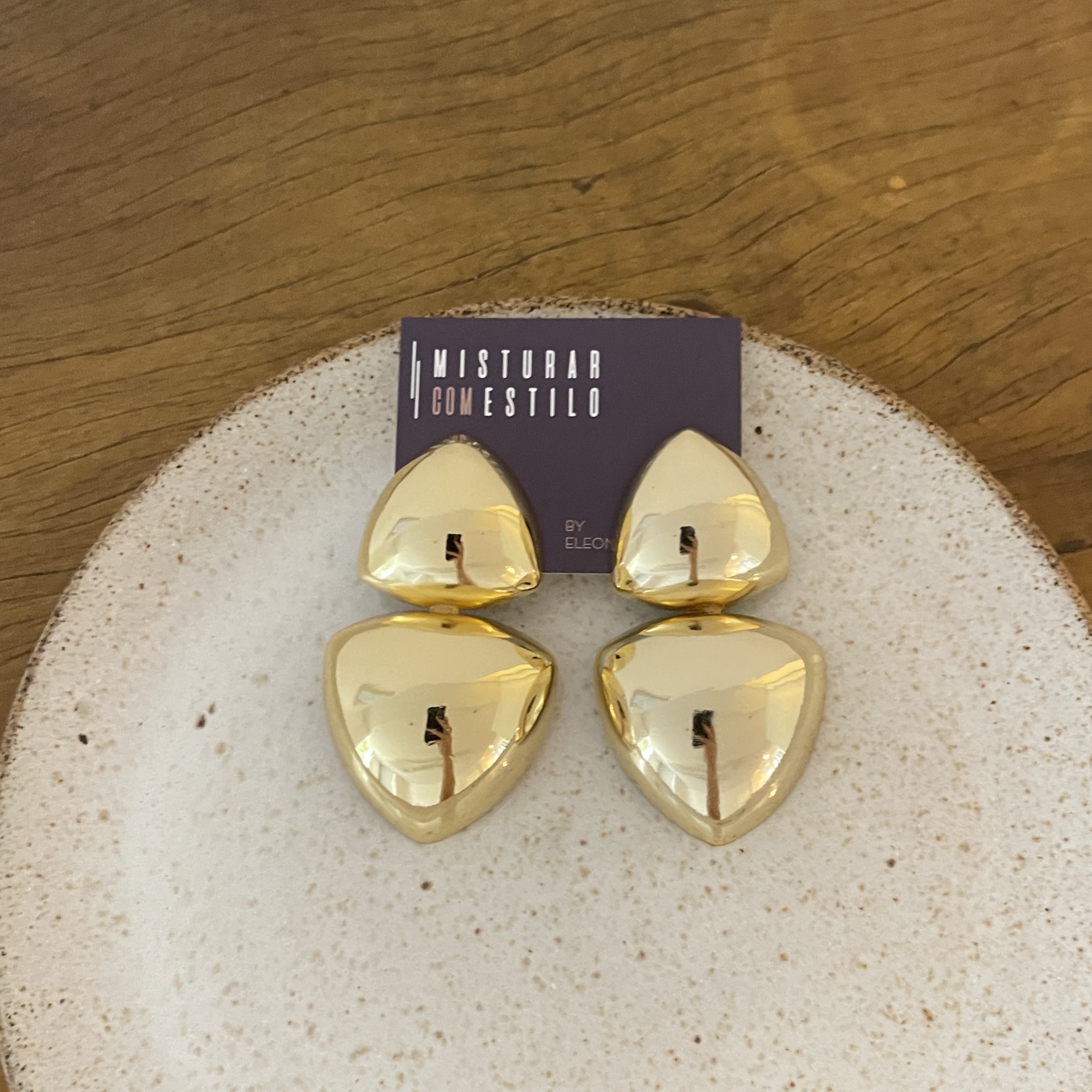 brinco com dois ''triângulos'' max dourado, semijoia - ouro 18k