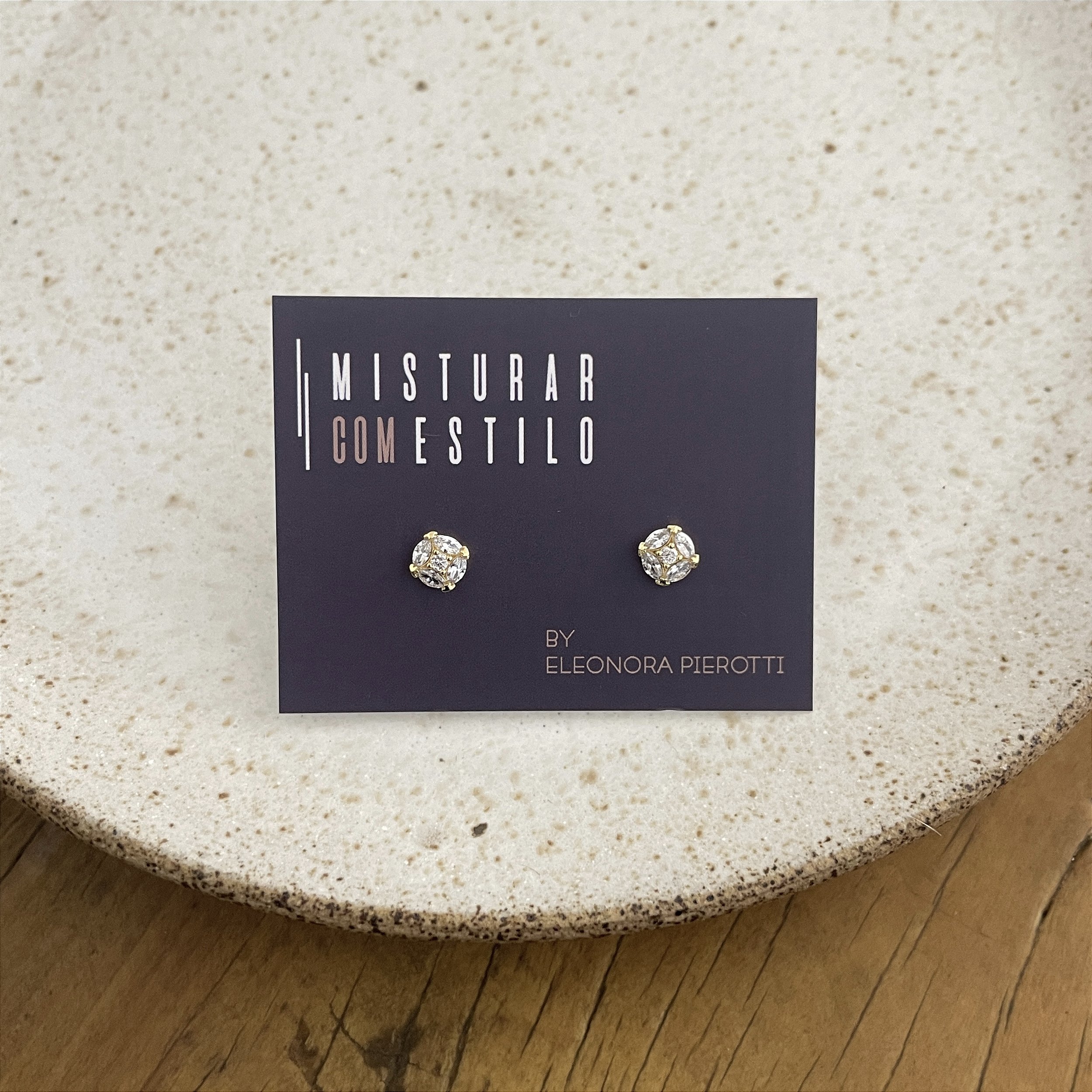 Brinco estilo Pavê cravejado de Zircônia, Semijoia, Ouro 18k