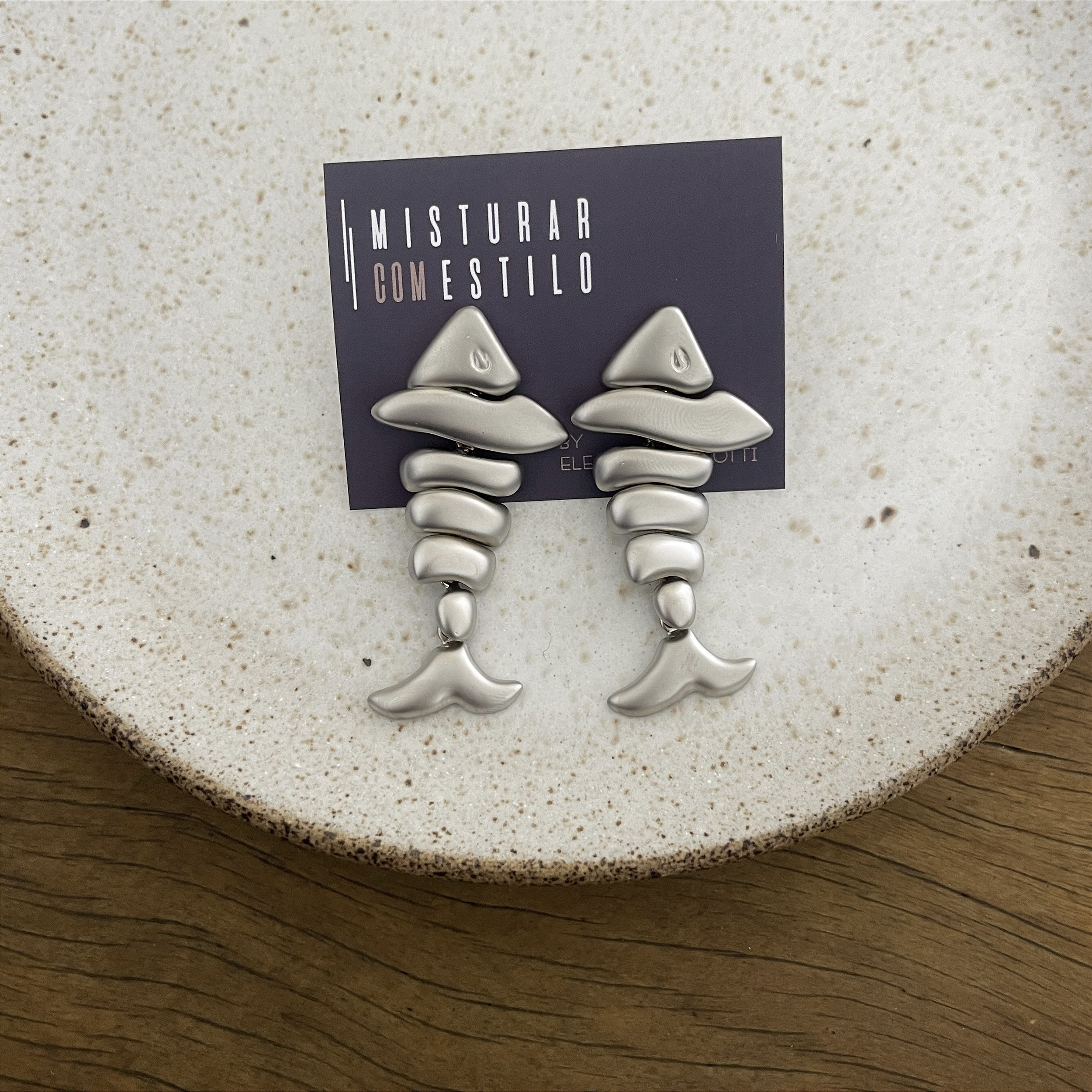 brinco de ''peixe'', ródio fosco, as peças dele se movem - semijoia