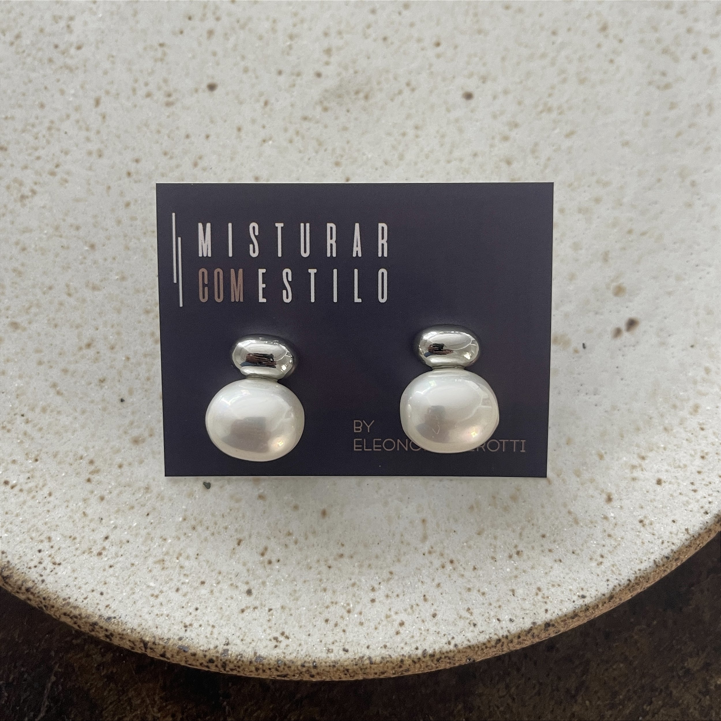 brinco com uma pérola deitada e um ródio oval, dourado - semijoia