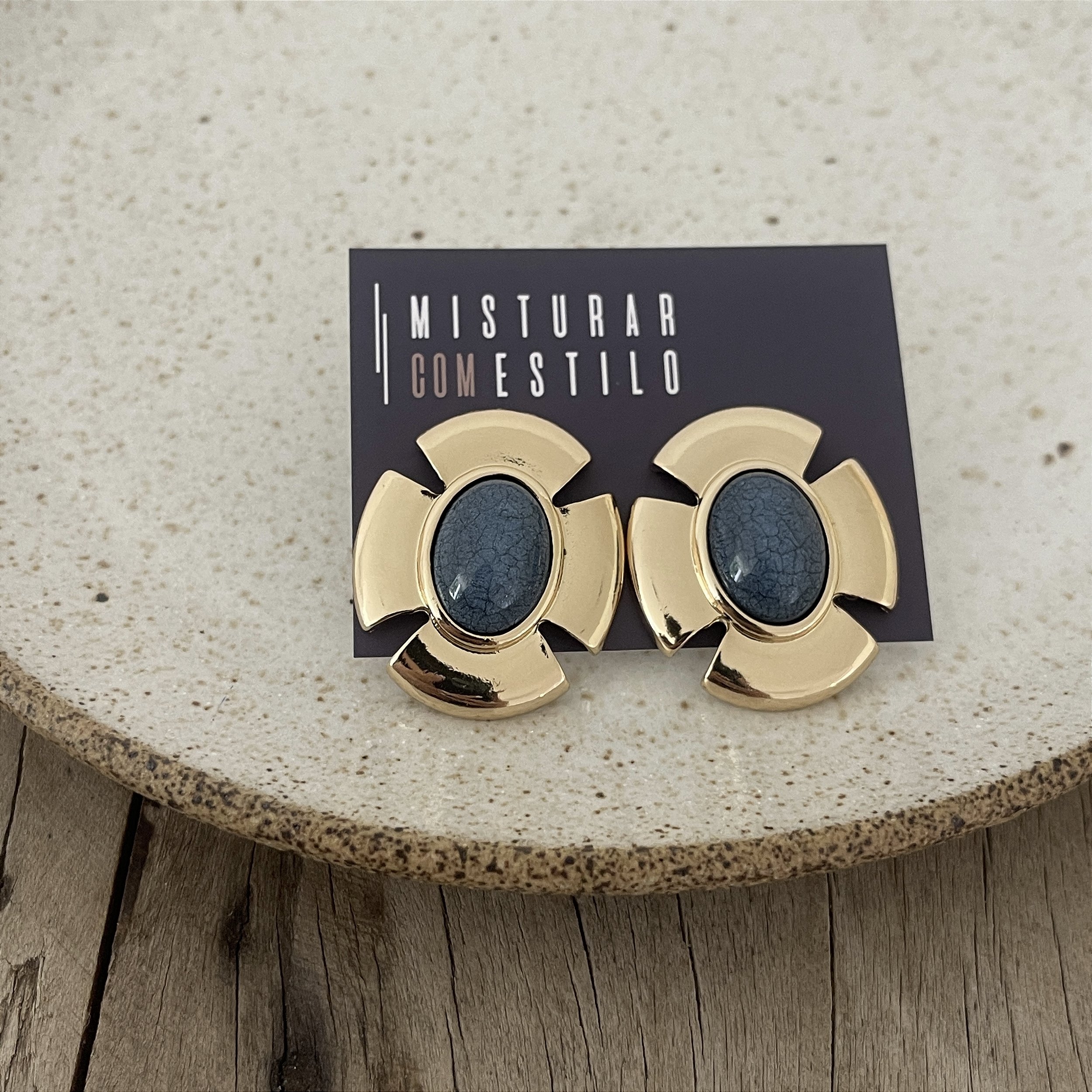 brinco dourado brilho, vazado com uma pedra no meio - biju