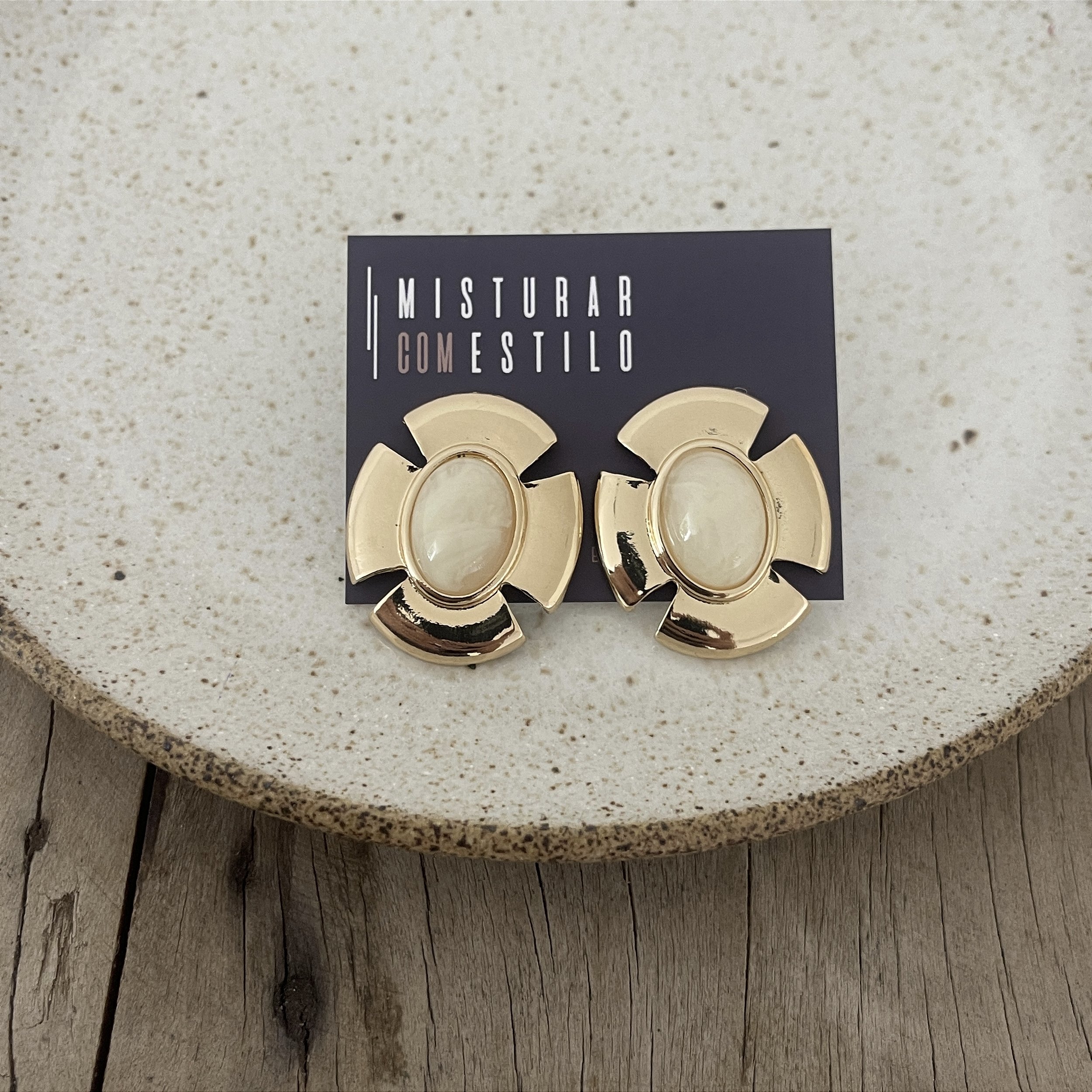 brinco dourado brilho, vazado com uma pedra no meio - biju