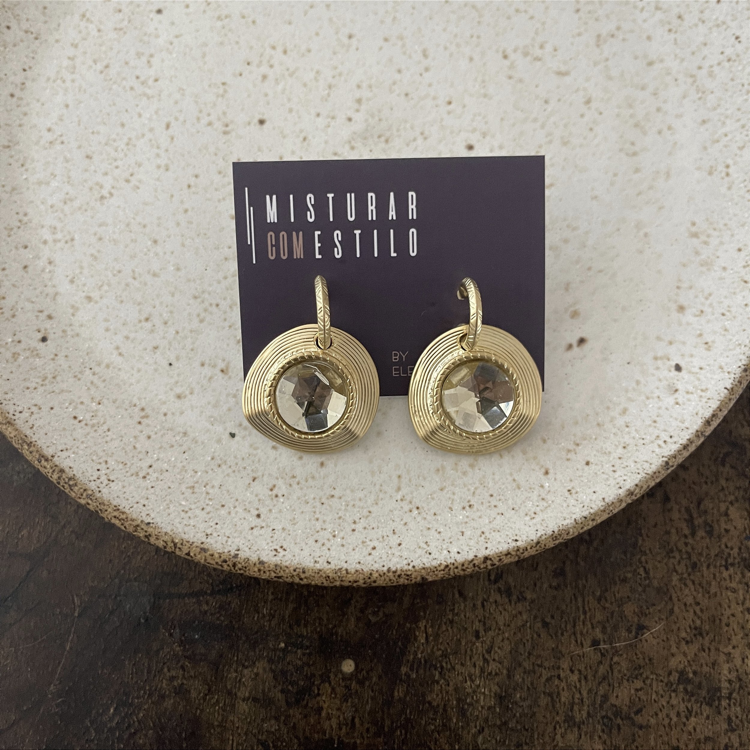 Brinco redondo com uma pedra citrino e pino argolinha, dourado fosco- biju
