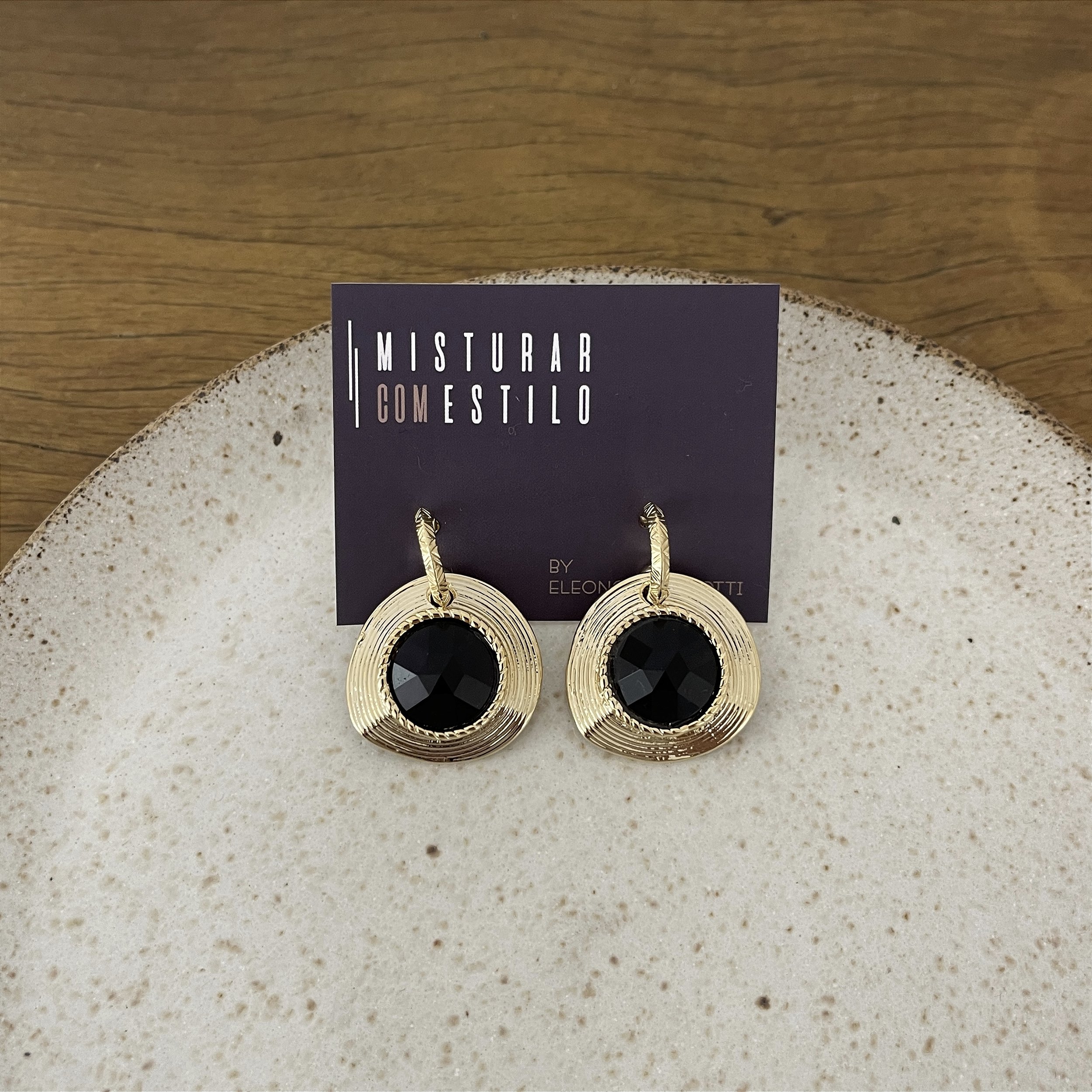 Brinco redondo com uma pedra preta e pino argolinha - biju