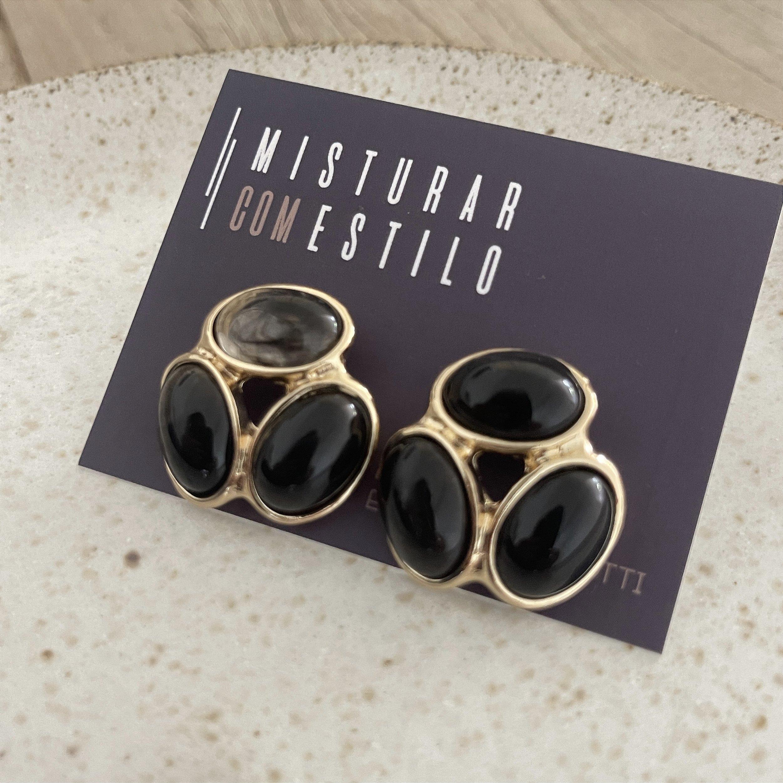 Brinco Petra Resina - Triplo - Fumê