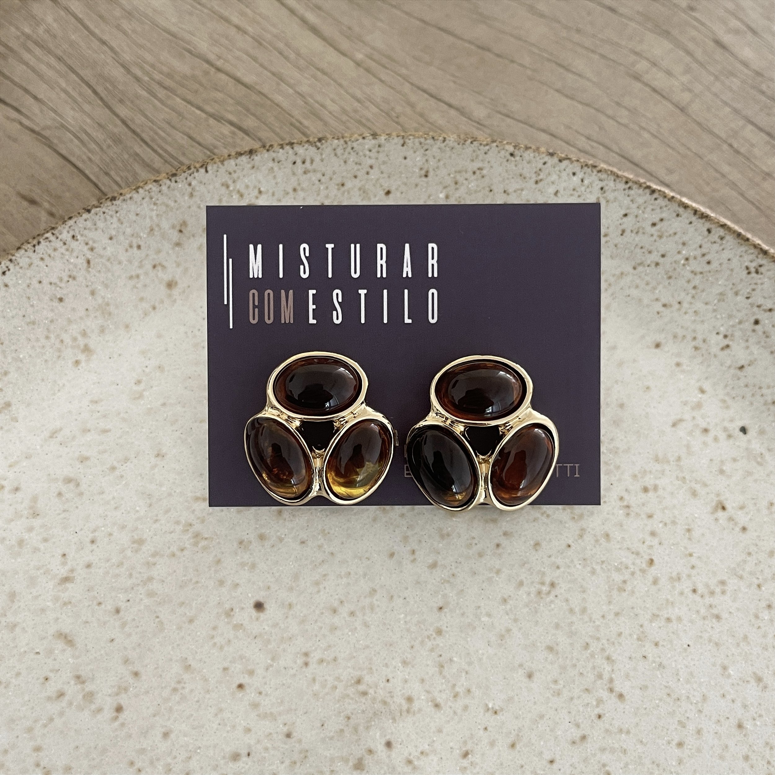 Brinco Petra Resina - Triplo - Tartaruga