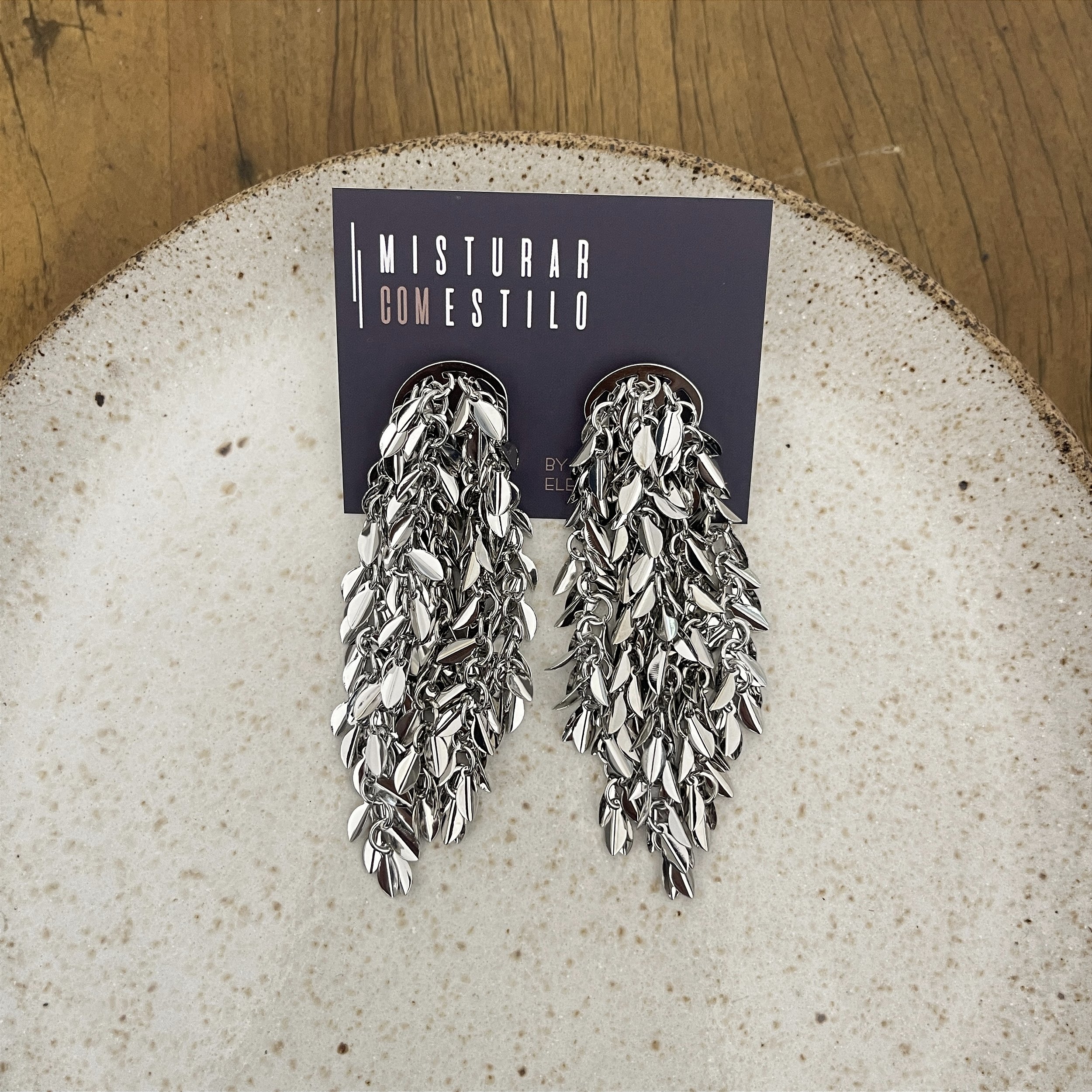brinco chuveiro de folhas, ródio - biju, latão