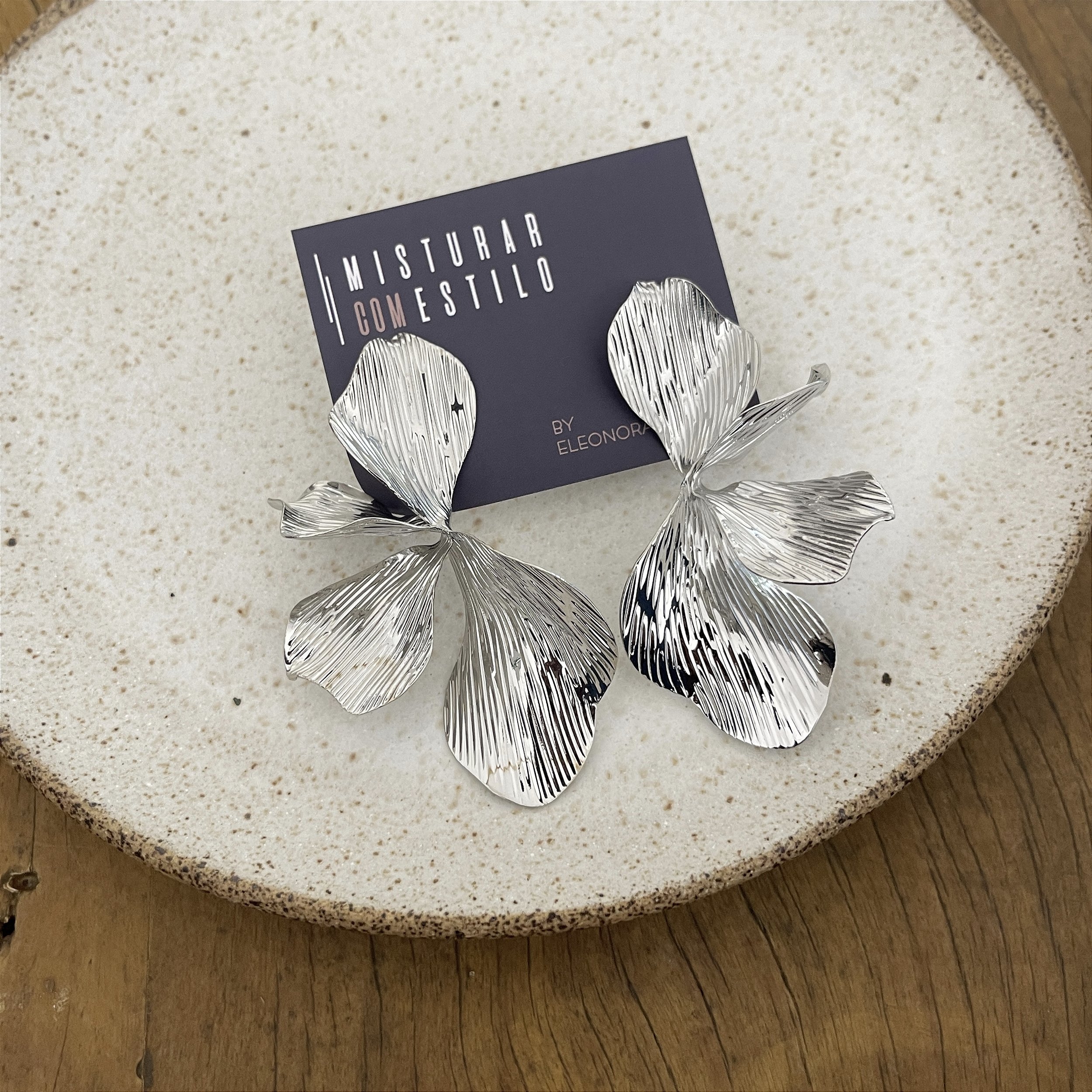 brinco flor max canelada, ródio - biju, latão